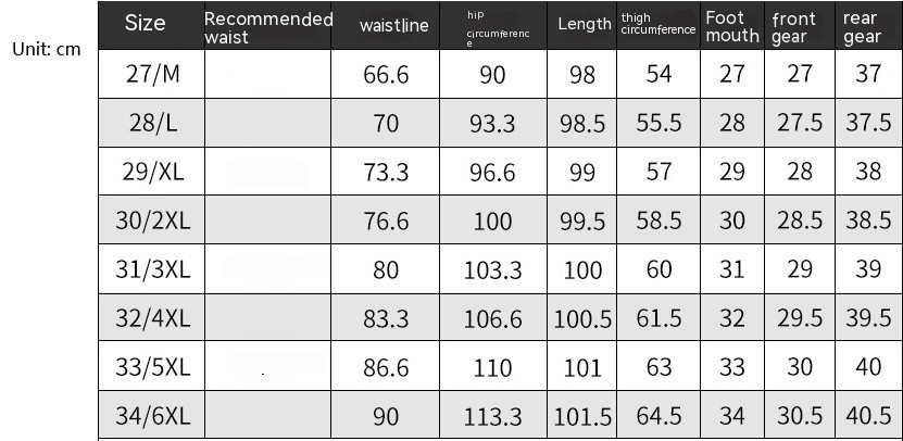 Size: 27, 28, 29, 30, 31, 32, 33, 34
