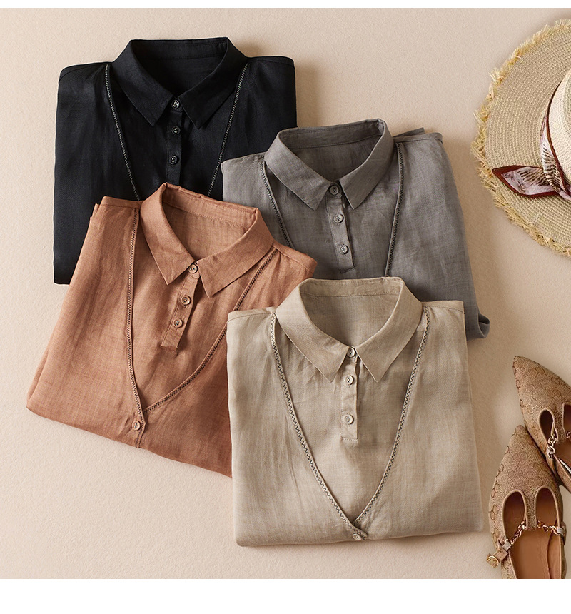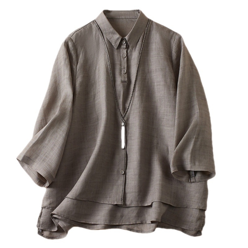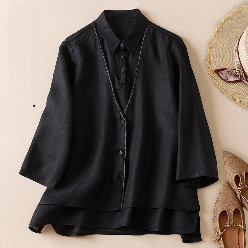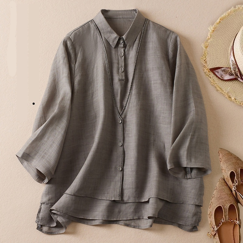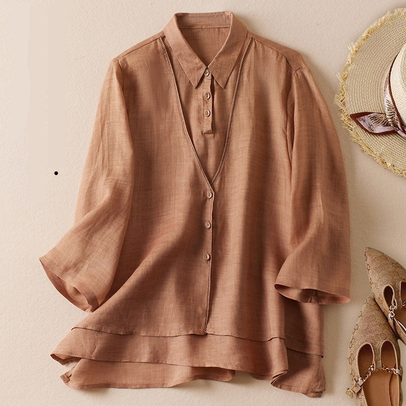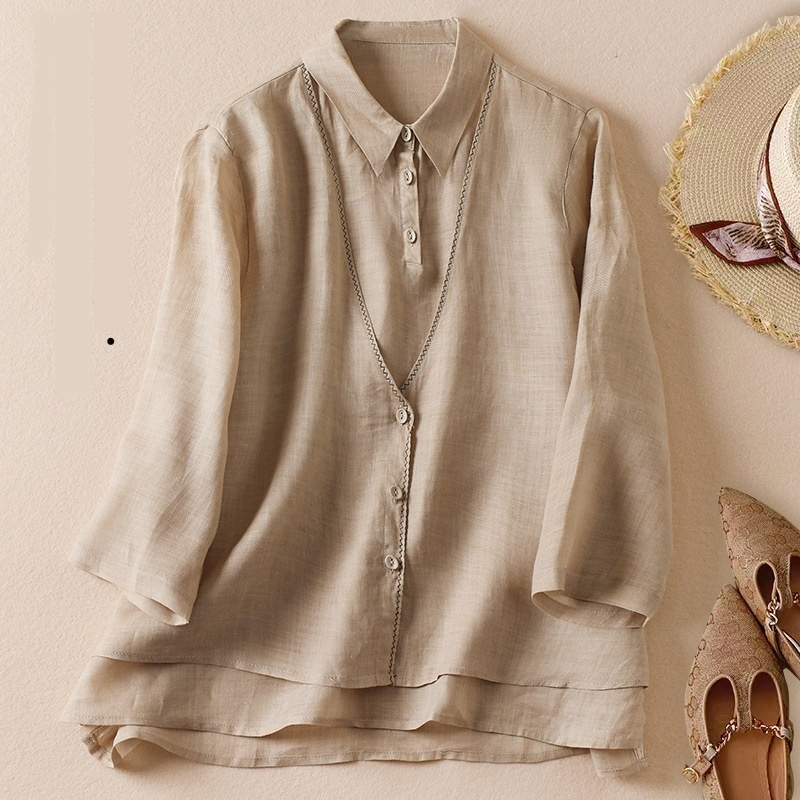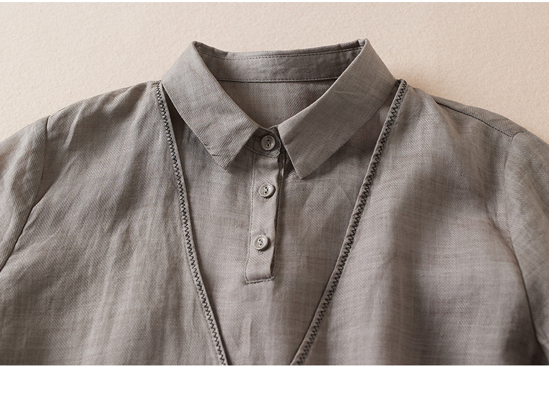 Women's Artistic Retro Fake Two-piece Cotton And Linen Half Sleeves Shirt