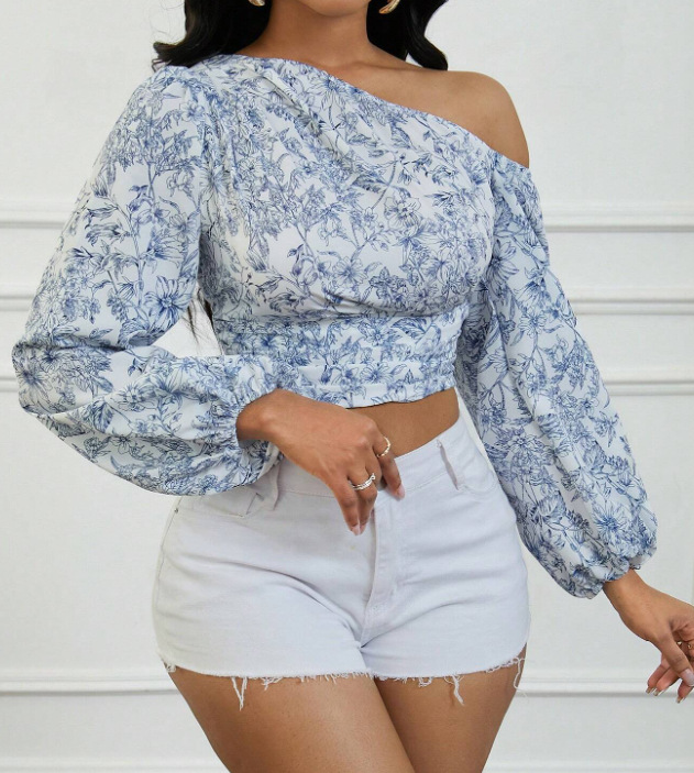 Trendy Elements: Print, Off-the-Shoulder, Asymmetry