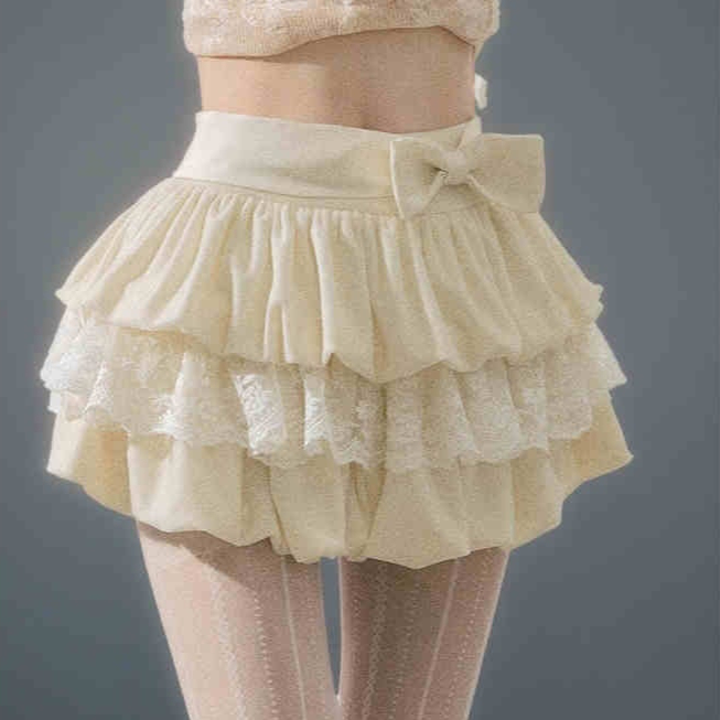 Color classification: apricot short skirt, black short