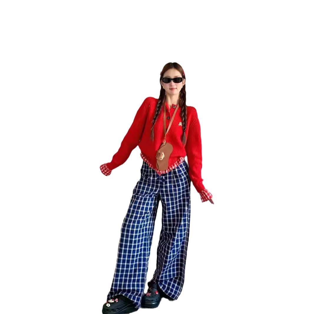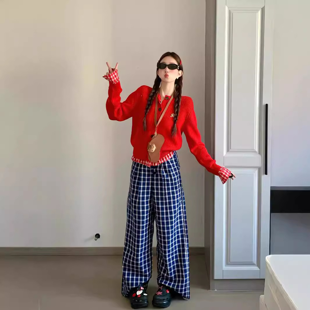 Color: red false two-piece suit, navy blue false two-piece suit