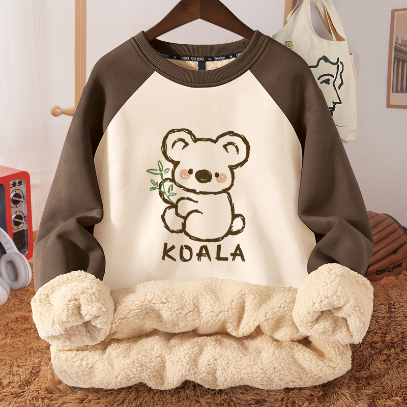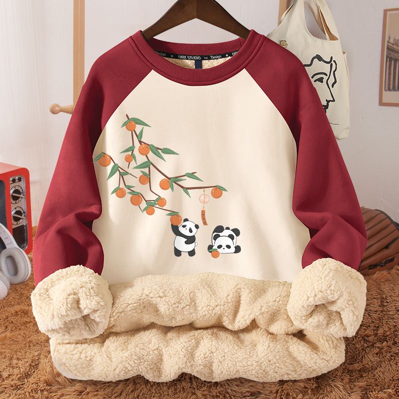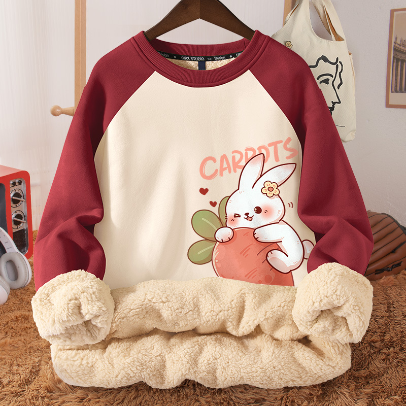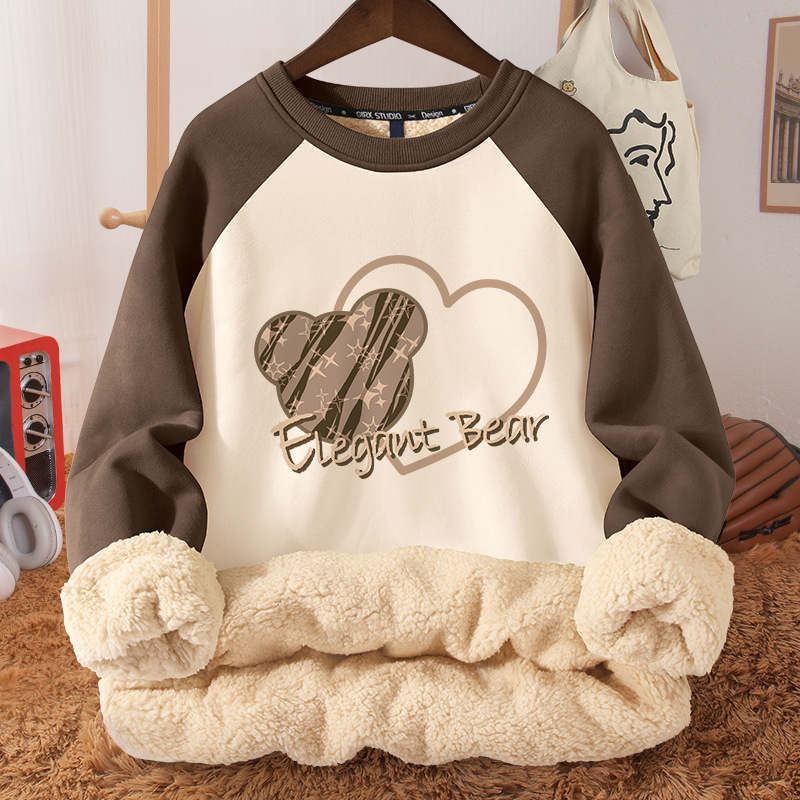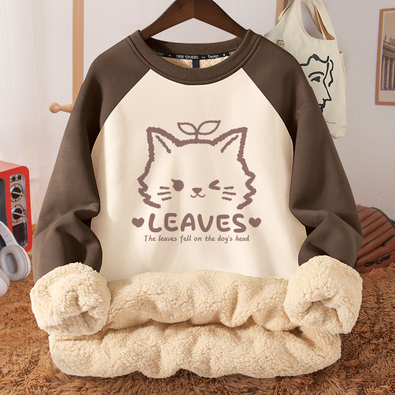 Women's Autumn And Winter Fleece-lined Thickened Hooded Berber Fleece Coat Contrast Color Raglan