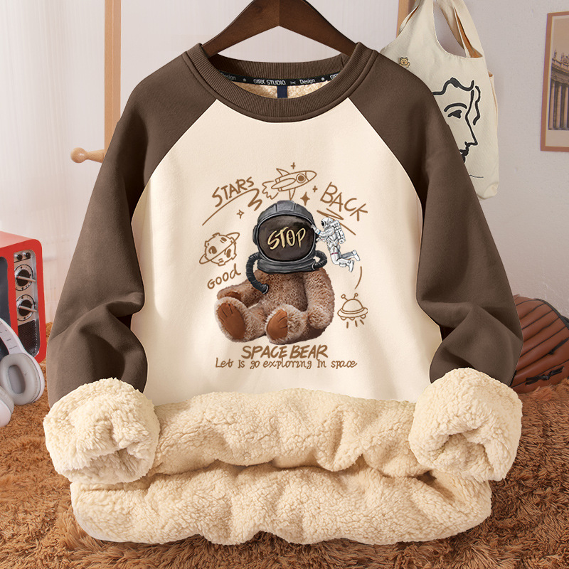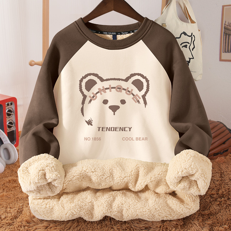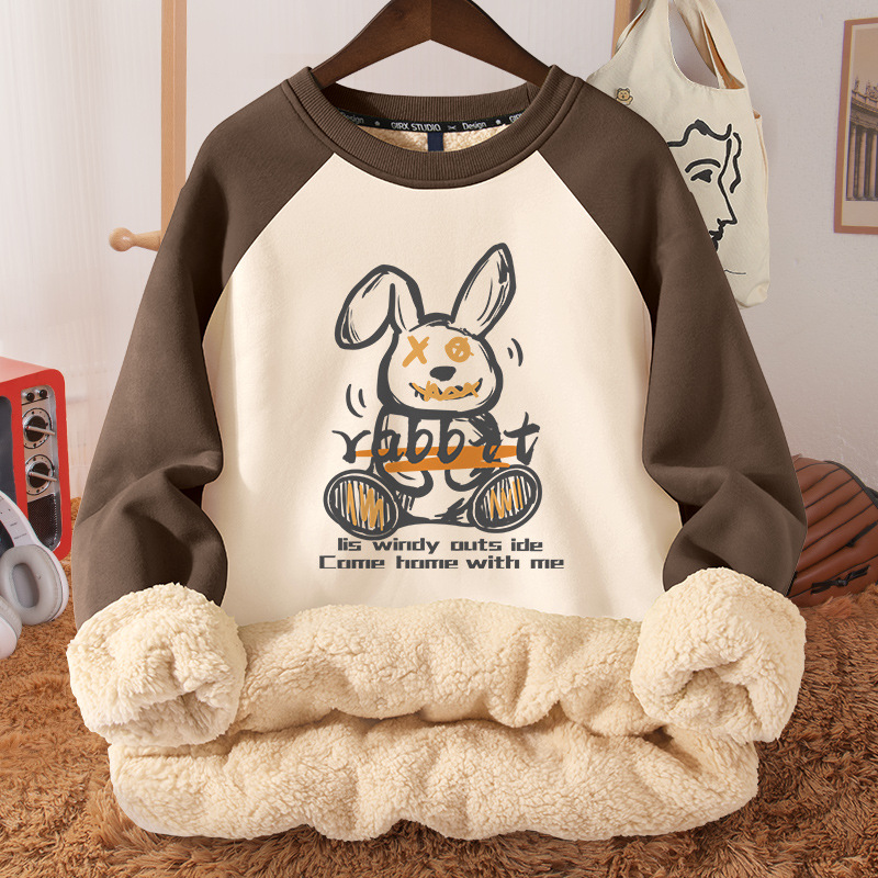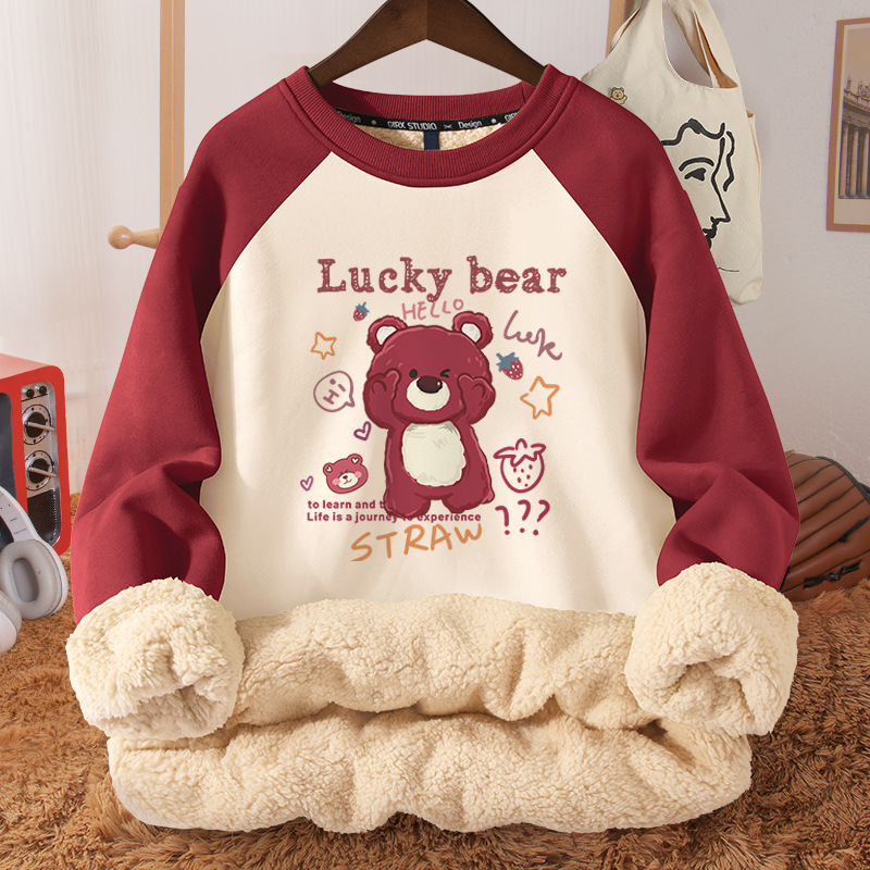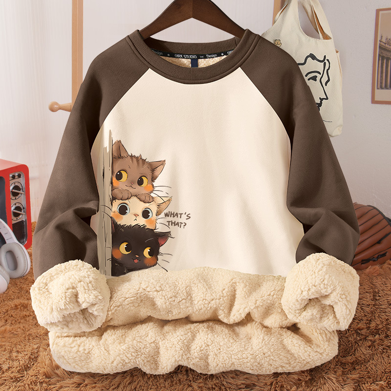 Women's Autumn And Winter Fleece-lined Thickened Hooded Berber Fleece Coat Contrast Color Raglan