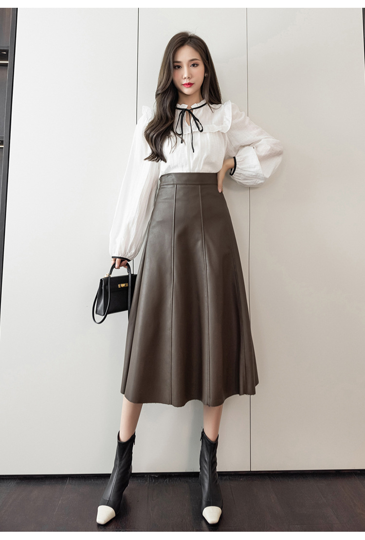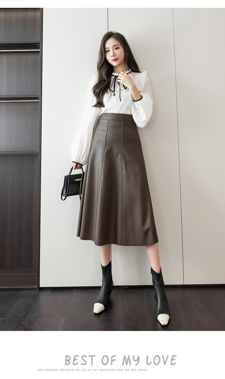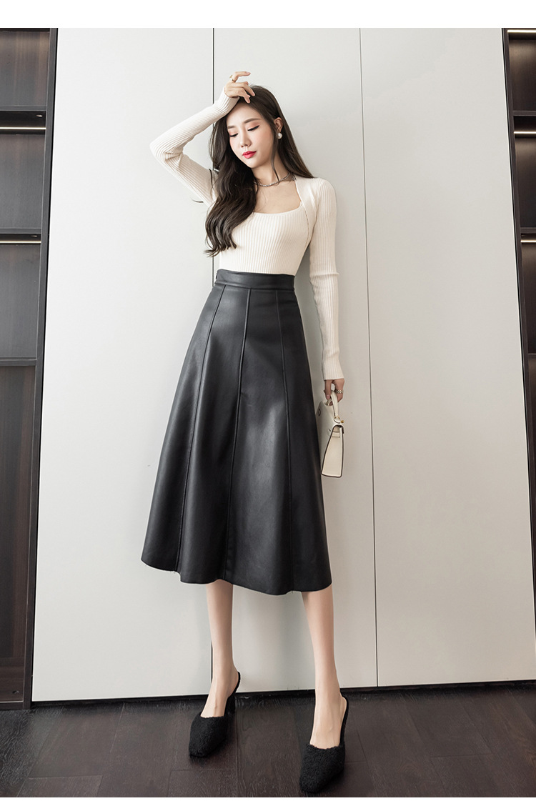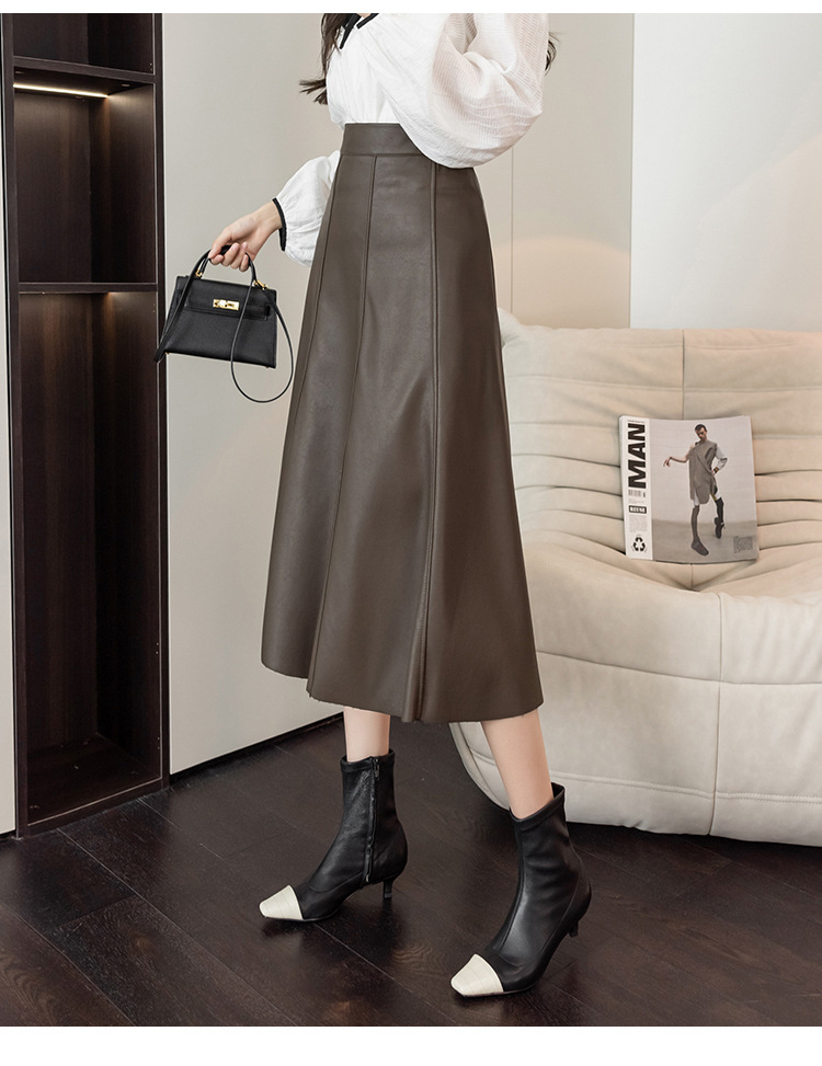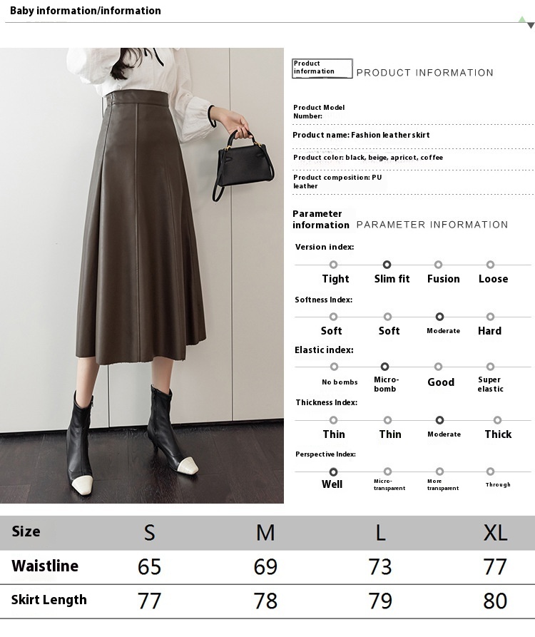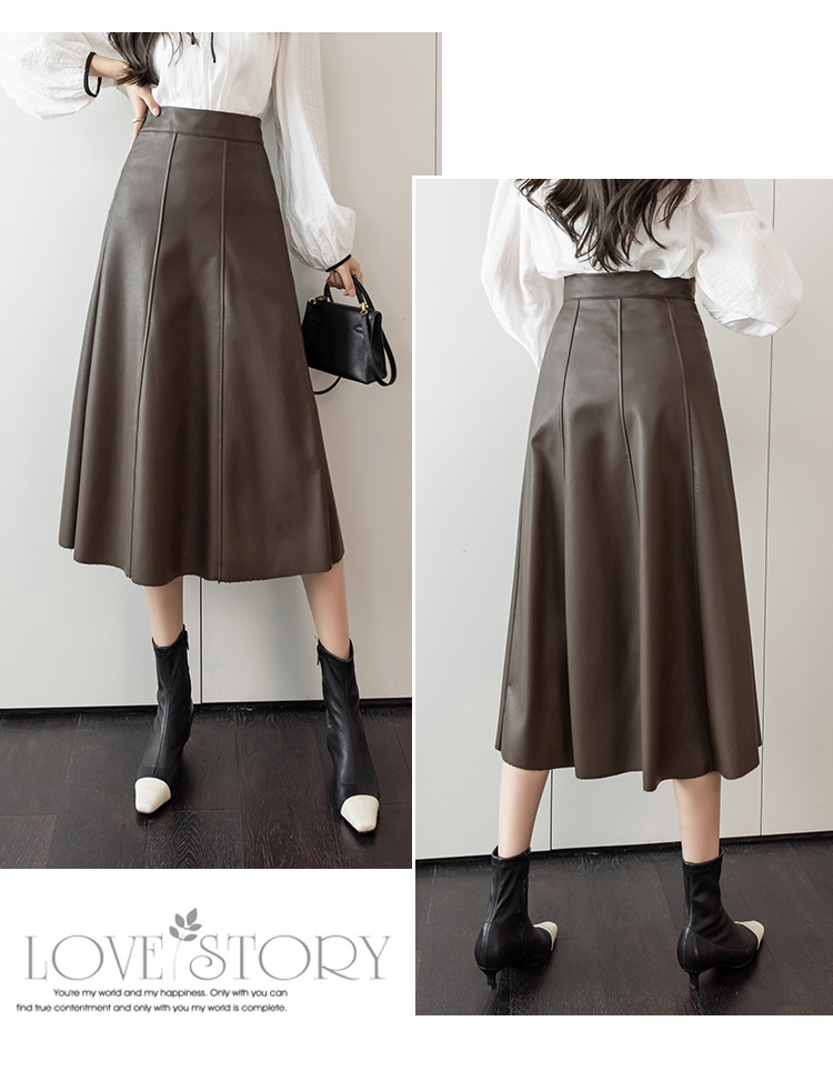 Women's Autumn And Winter High Waist PU Leather Skirt