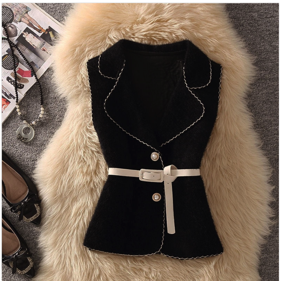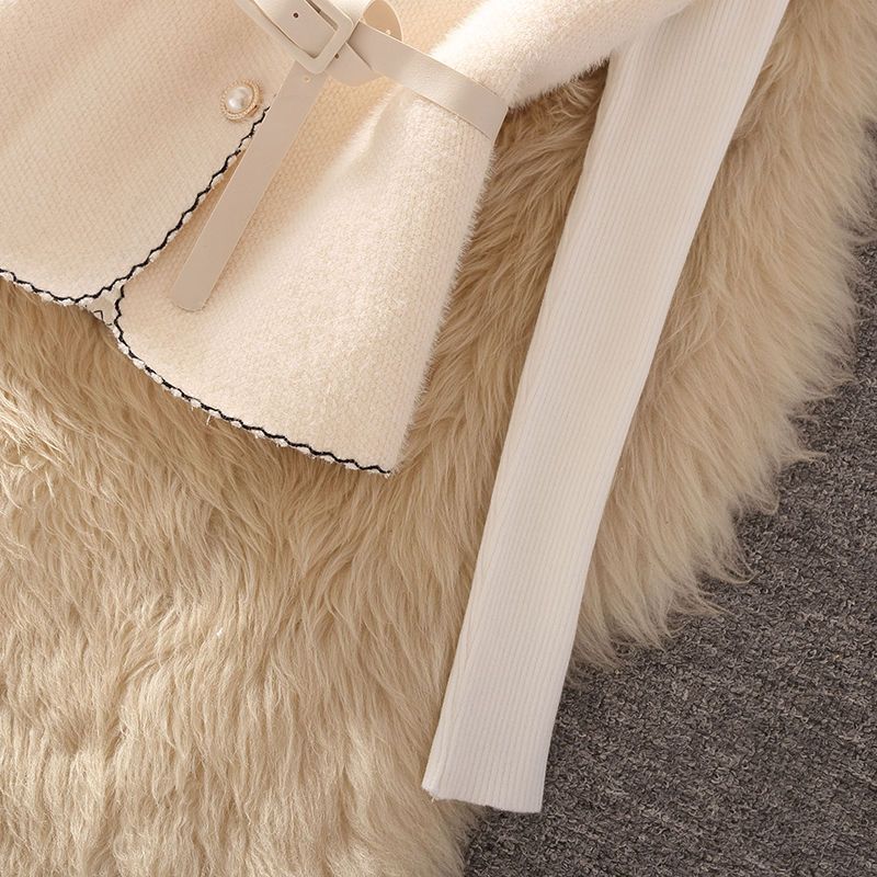 Color: Black [one piece of vest], White [one piece of vest], black vest + black sweater [two-piece set], white vest + white sweater [two-piece set], black sweater [one-piece sweater]], white sweater [single sweater], apricot sweater [single sweater]]