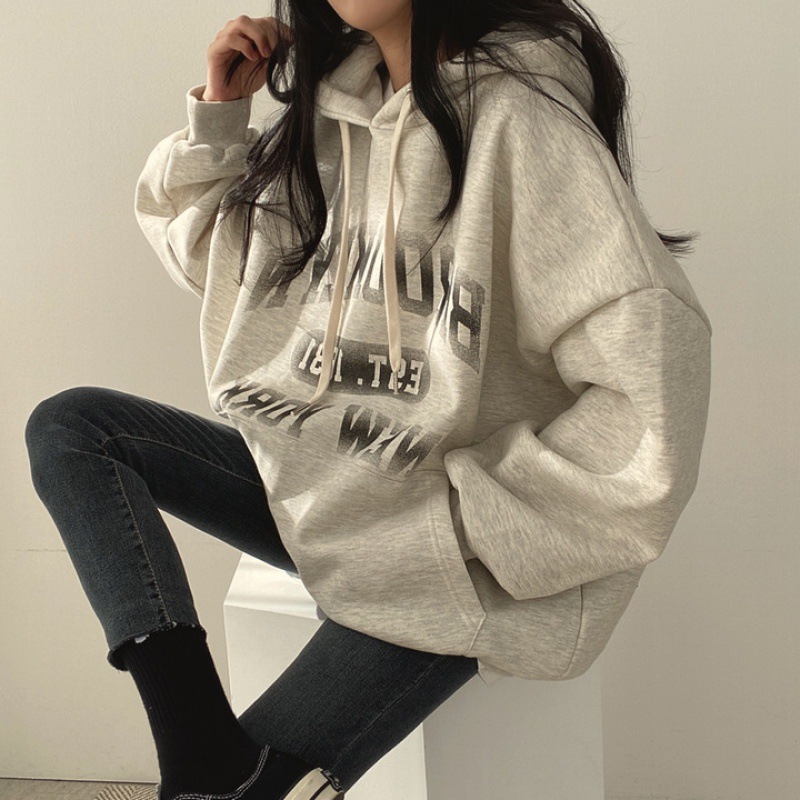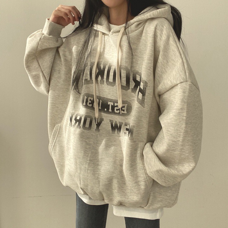 Women's Autumn And Winter Thickening Fleece Padded Coat Letter Hooded Sweater