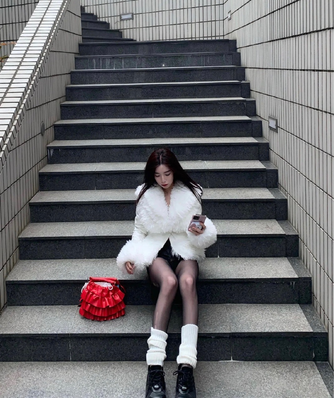 Women's Autumn And Winter White With Lapel Sweet Cool Coat