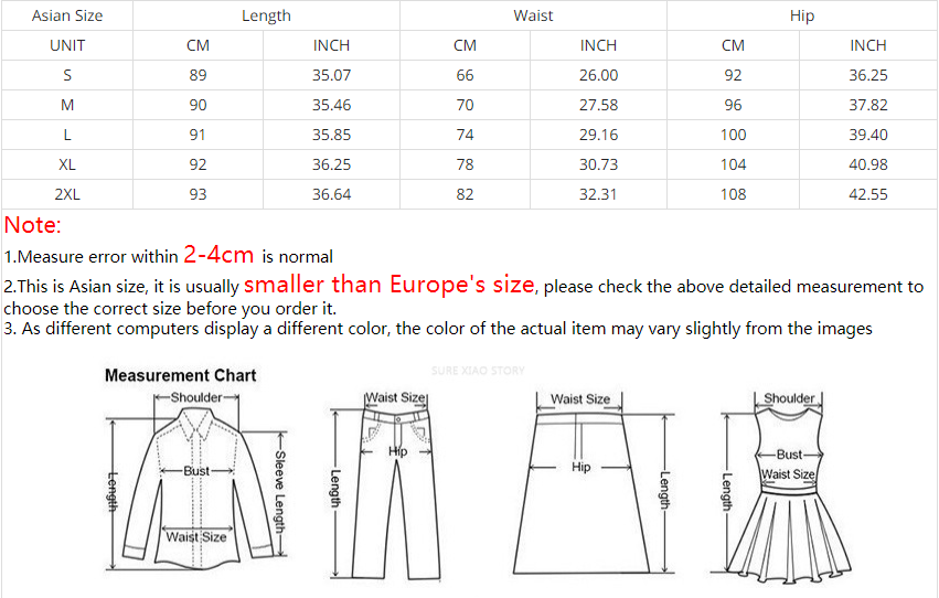 1. Asian sizes are 1 to 2 sizes smaller than European and American people. Choose the larger size if your size between two sizes. Please allow 2-3cm differences due to manual measurement.