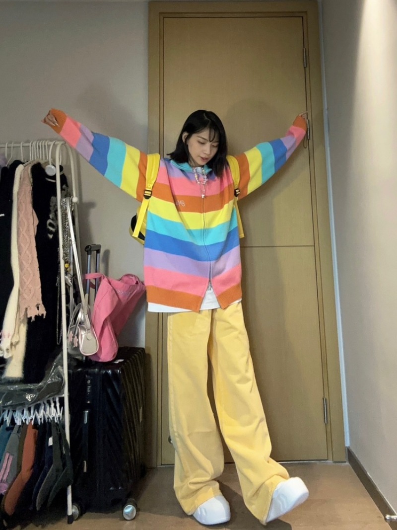 Color classification: yellow, green, black, pink pants
