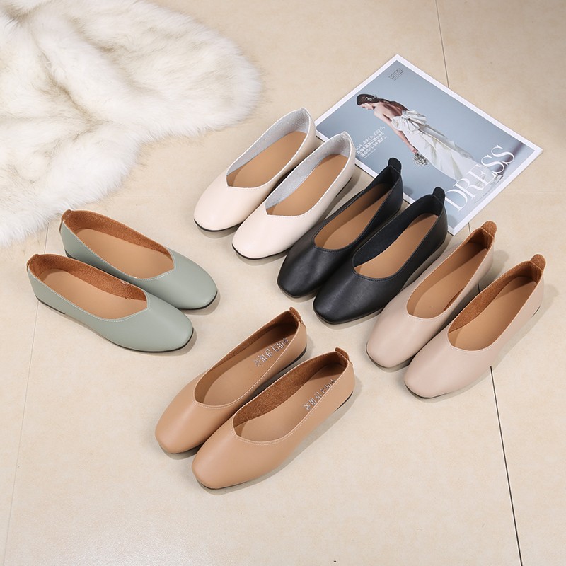 Women's Autumn Fashion Low-cut Square Toe Vintage Flat Shoes