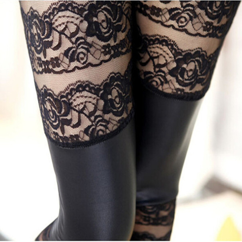 Women's Autumn Faux Leather Stitching Lace Leggings