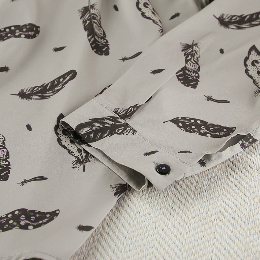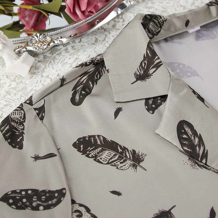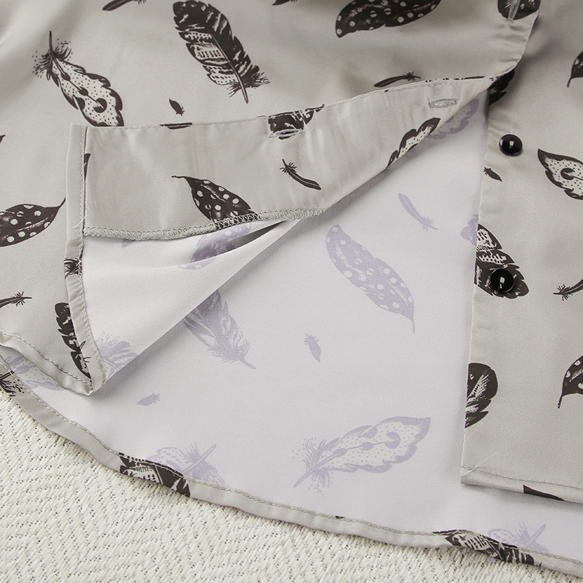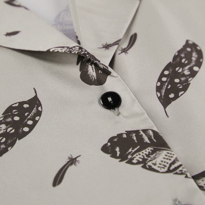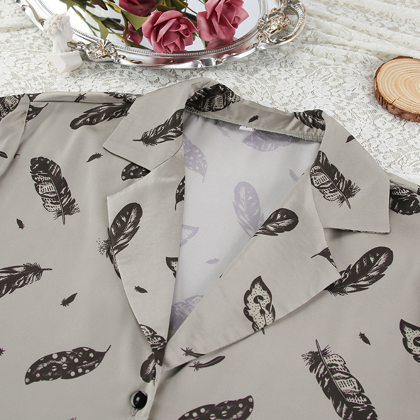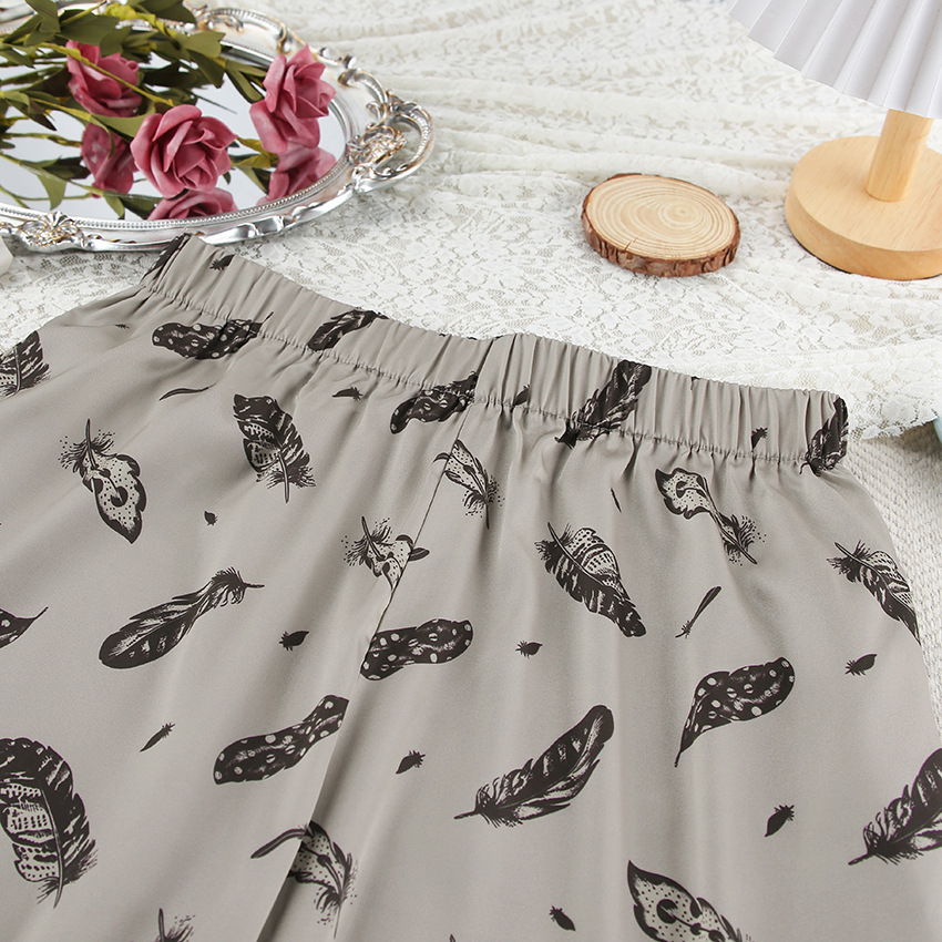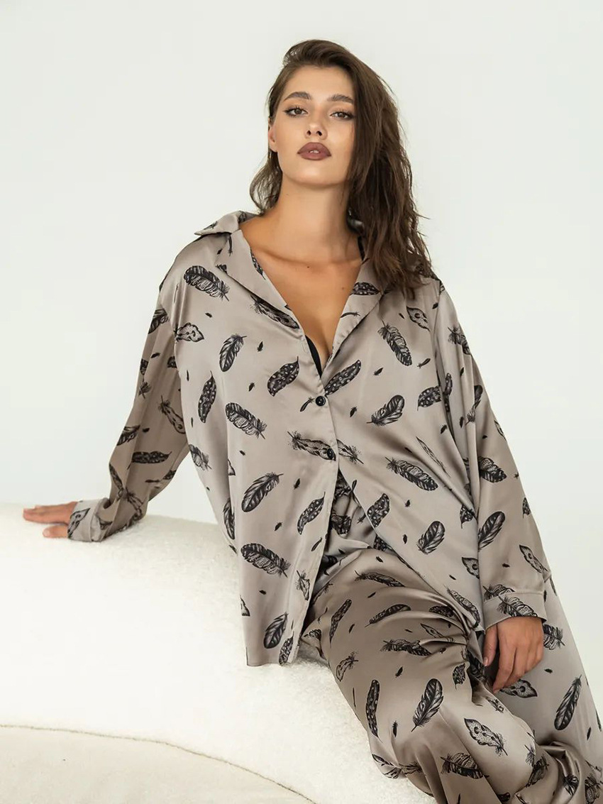 Womens Autumn Loose Stylish Printed Long-Sleeve Top And Pants Two-Piece Set In Imitation Silk For Home Wear