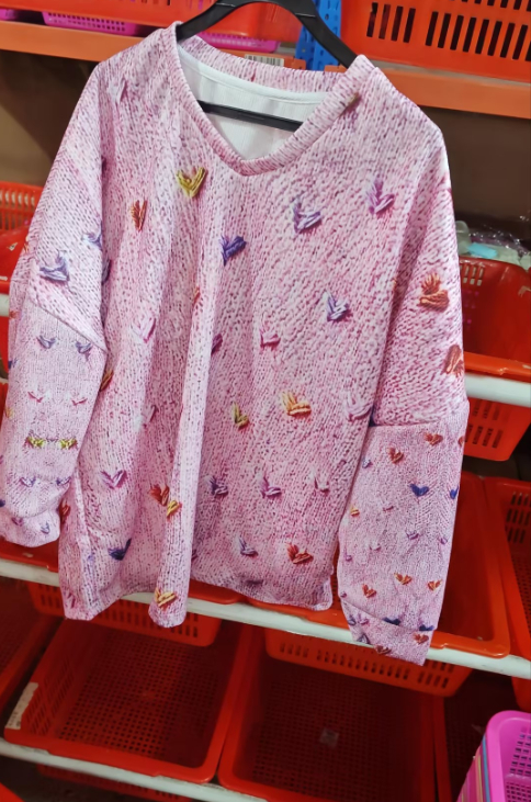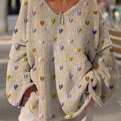 Women's Autumn Winter Lazy Style Loose V-neck Printed Pullover