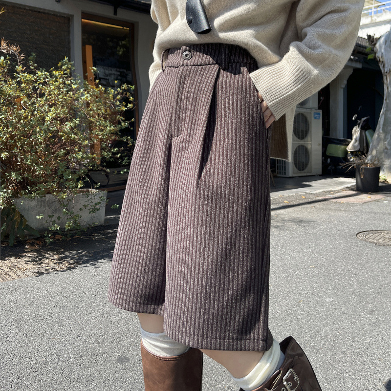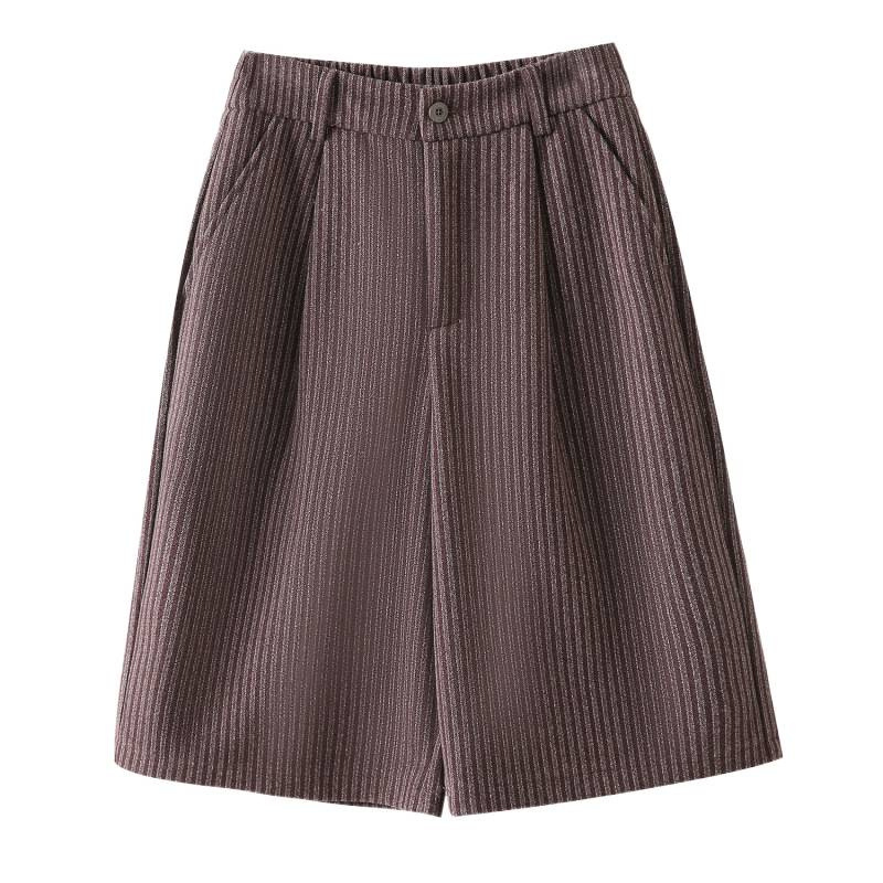 Womens AutumnWinter High-Waisted Striped Retro Wide-Leg Cropped Pants