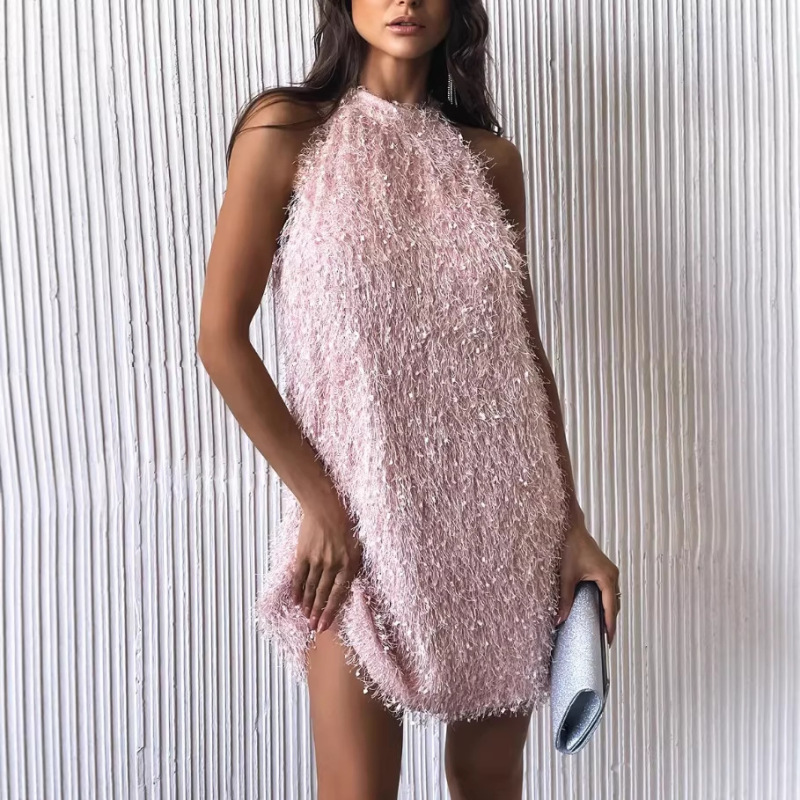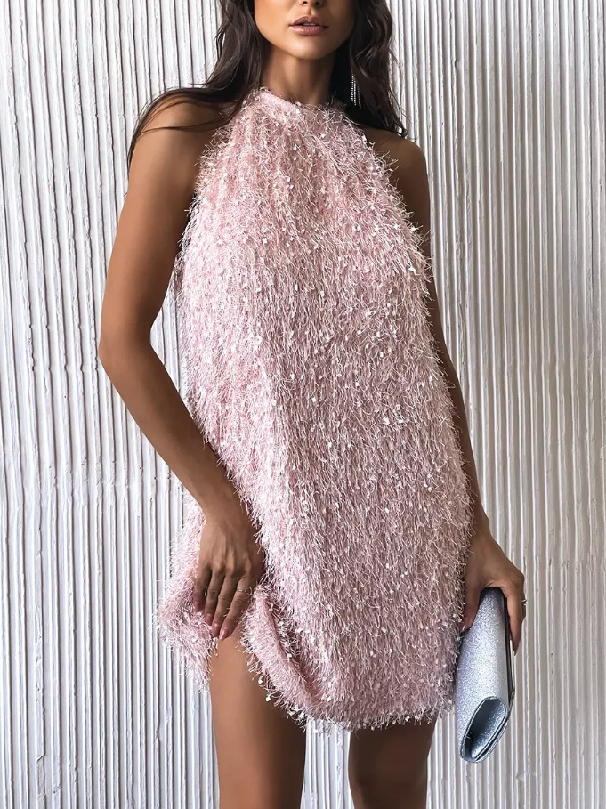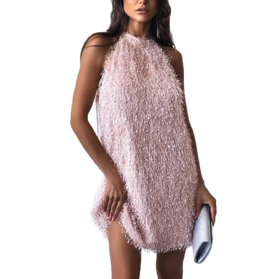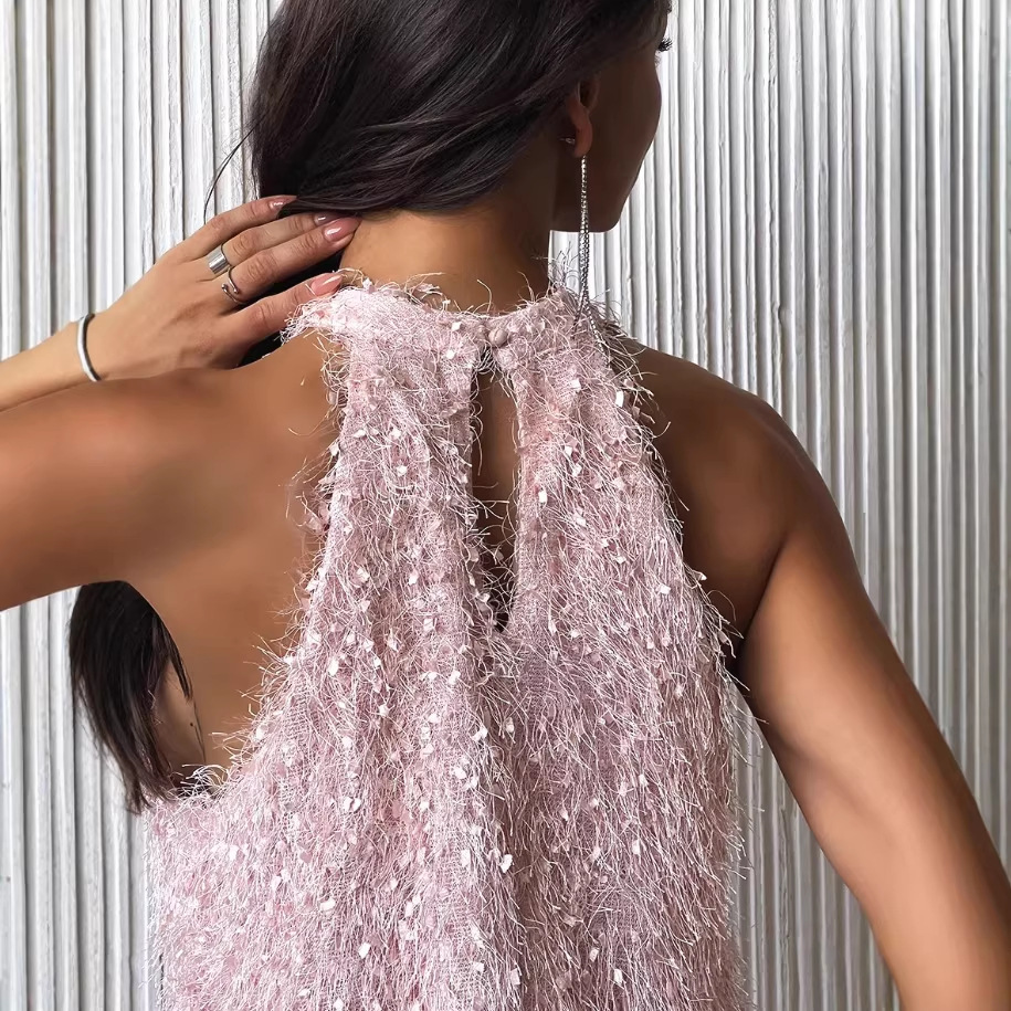 Womens Backless Tassel Dress