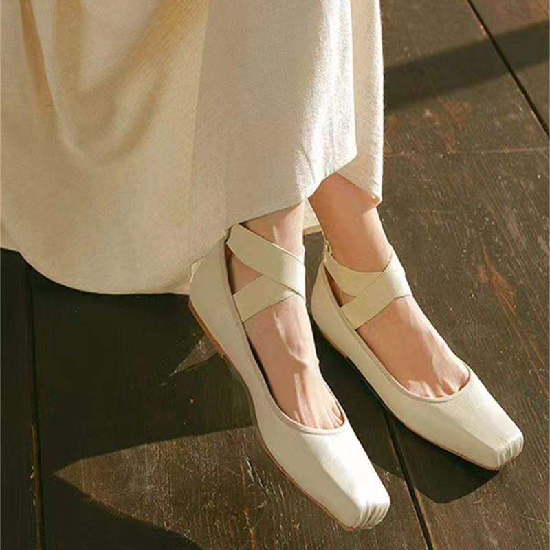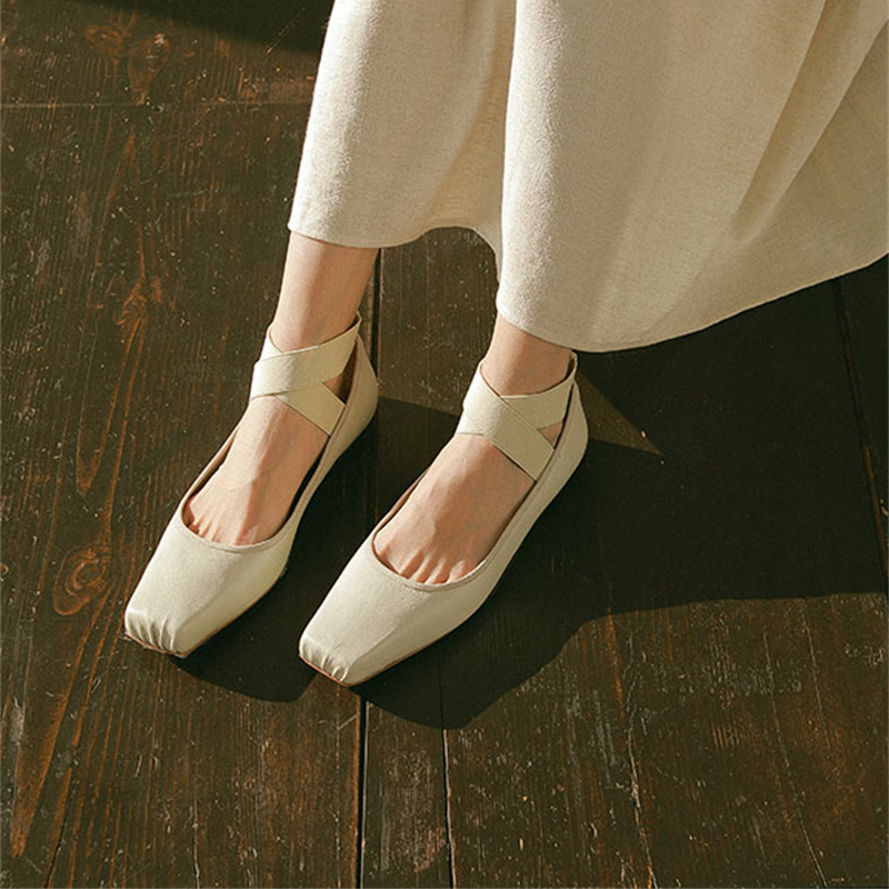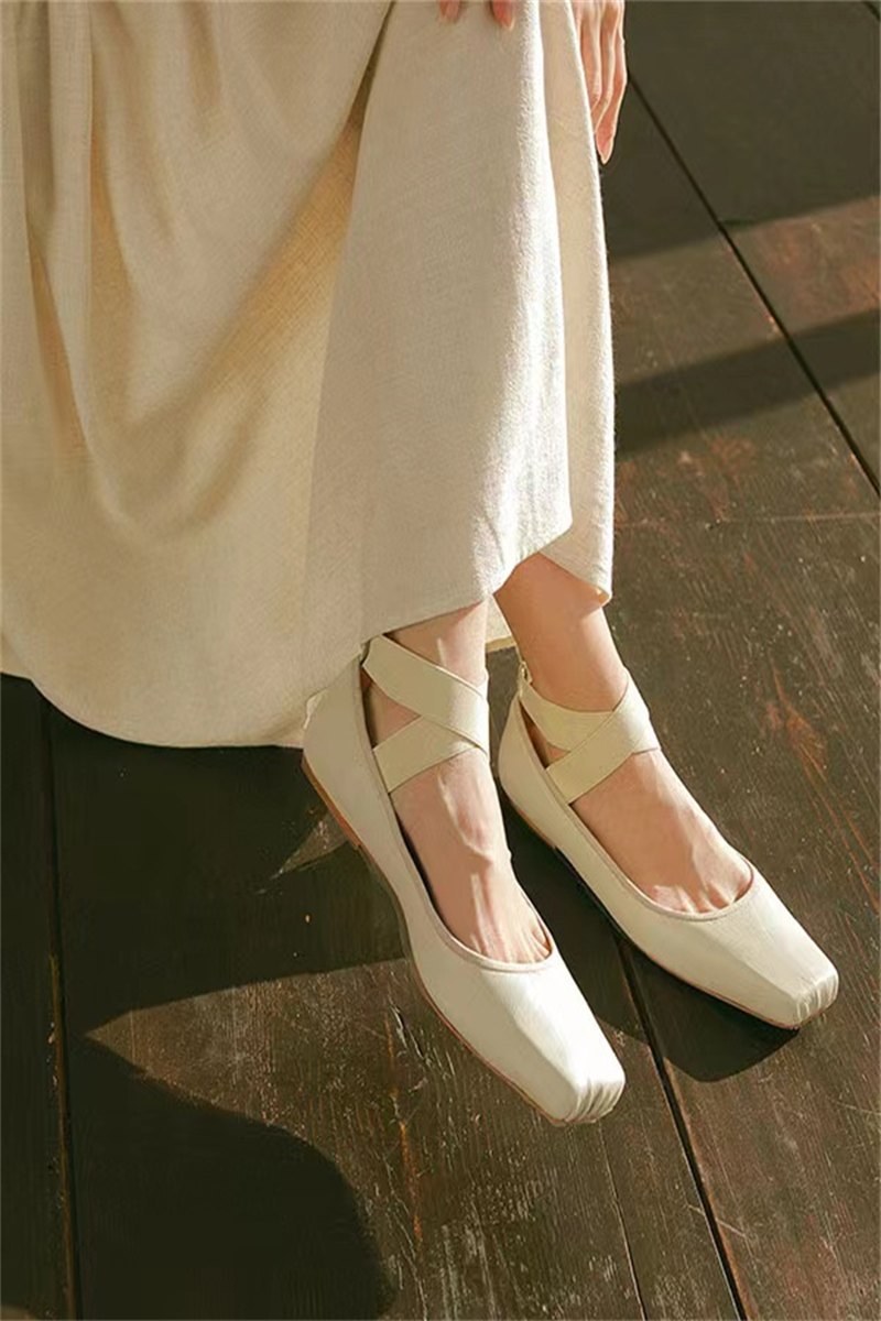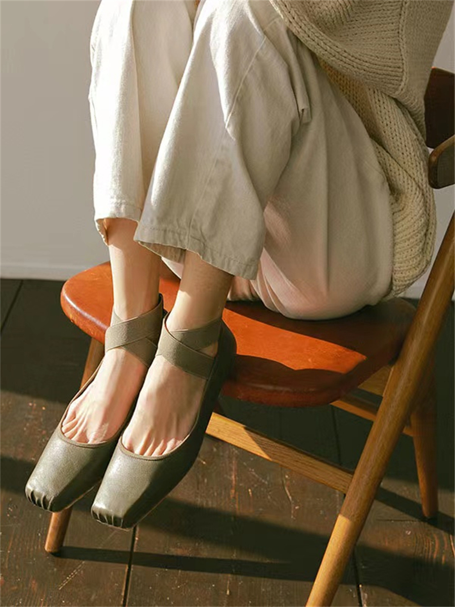 Women's Ballet Comfort Strap Leather Low Heel Pumps