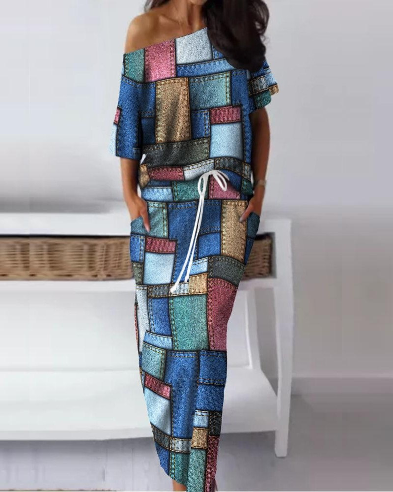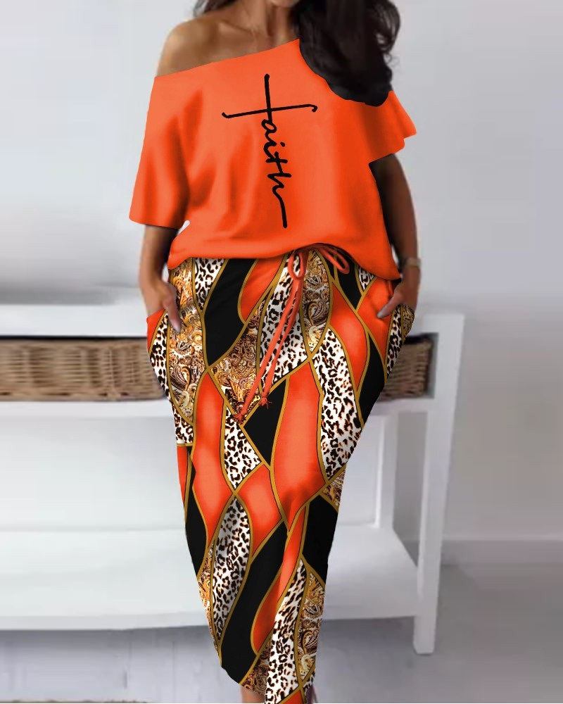 Women's Baroque Leopard Print Diagonal Collar Drawstring Skirt Suit