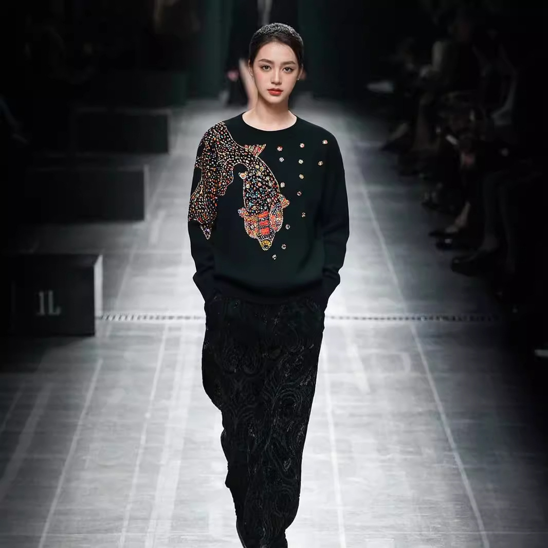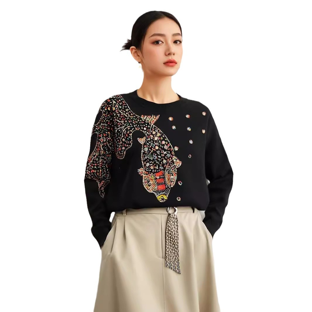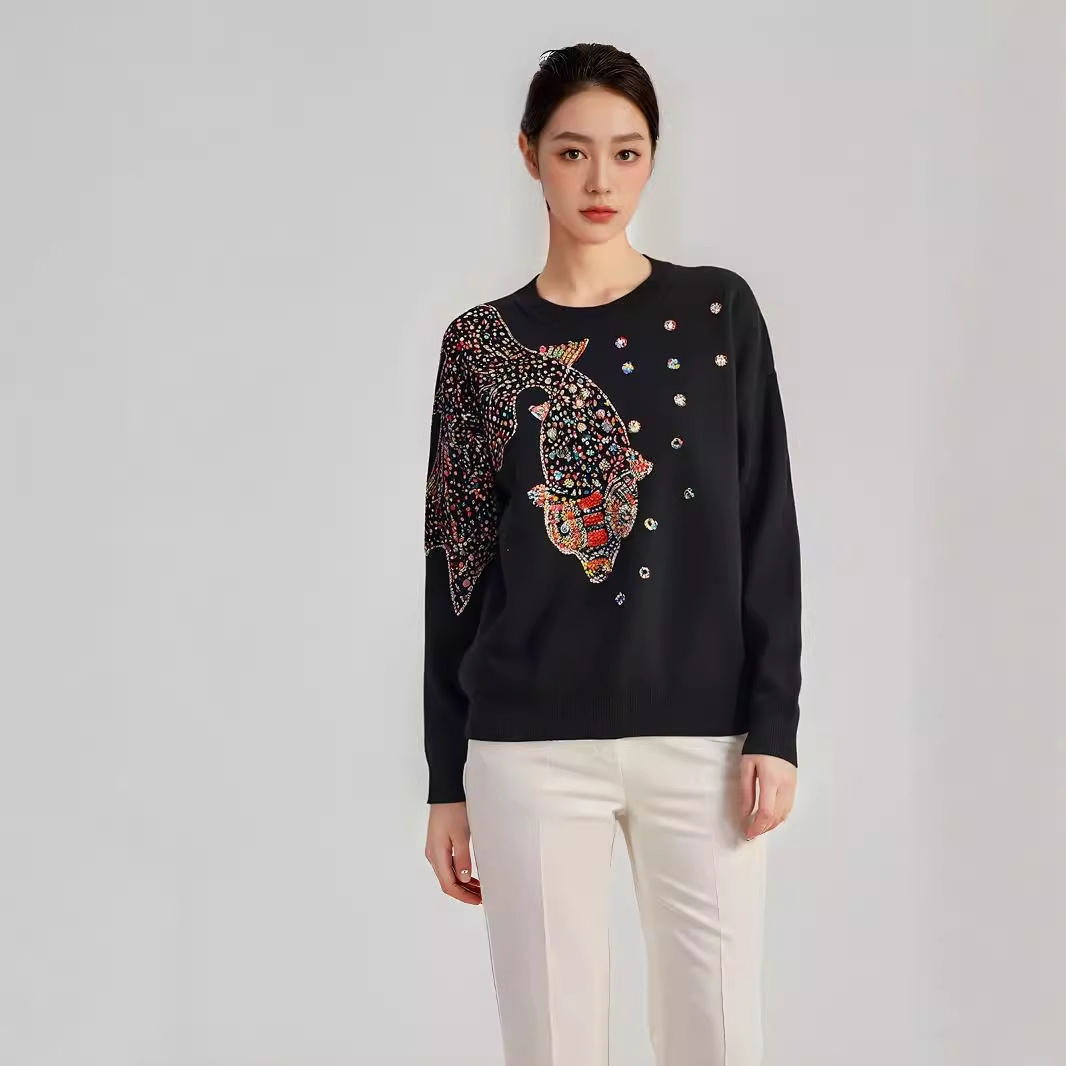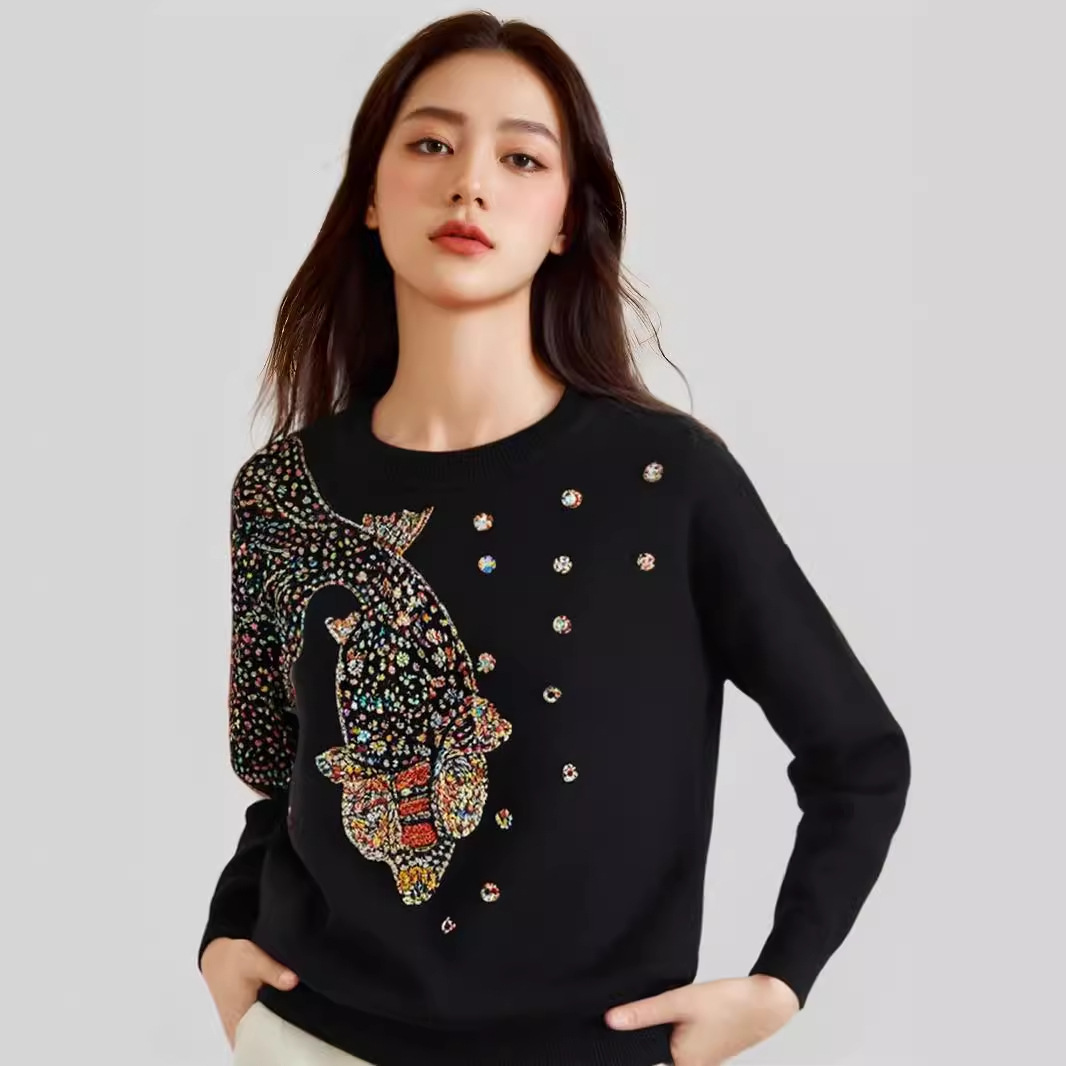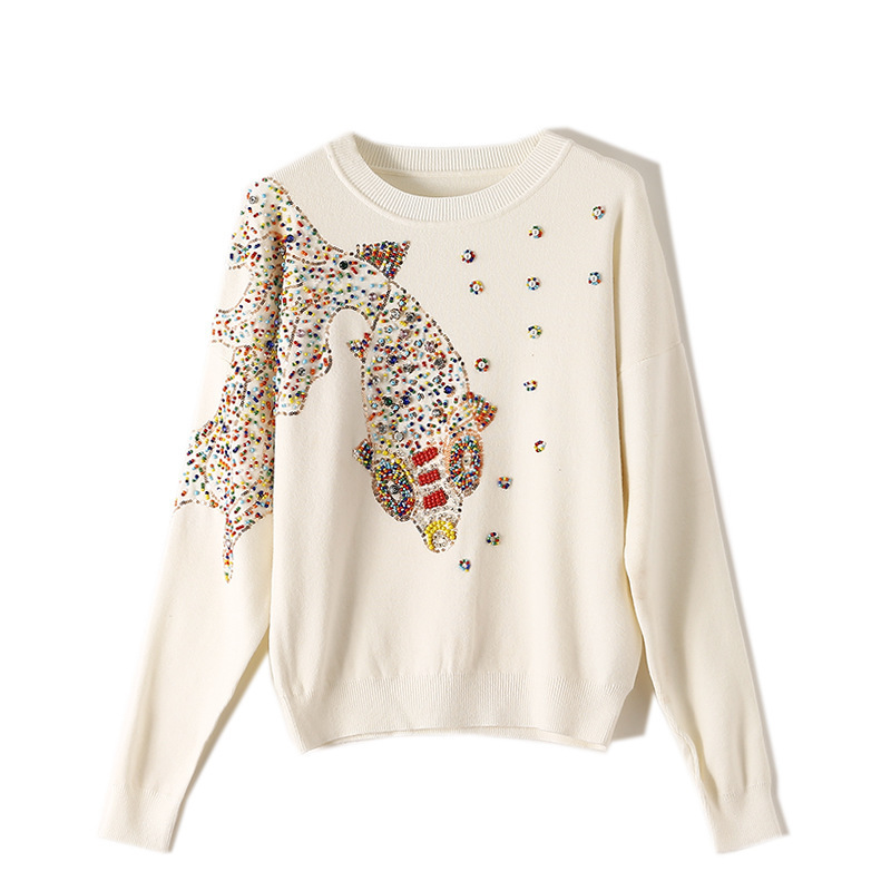 Women's Beads Rhinestones Goldfish Sequined Pullover Sweater