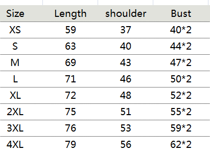 Size: XS, S, M, L, XL, 2XL, 3XL, 4XL