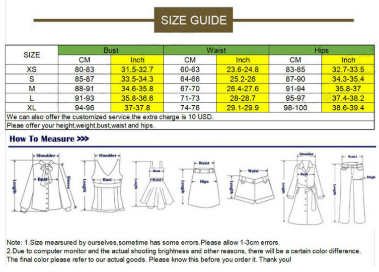 1. Asian sizes are 1 to 2 sizes smaller than European and American people. Choose the larger size if your size between two sizes. Please allow 2-3cm differences due to manual measurement. 2. Please check the size chart carefully before you buy the item, if you don't know how to choose size, please contact our customer service. 3.As you know, the different computers display colors differently, the color of the actual item may vary slightly from the following images.