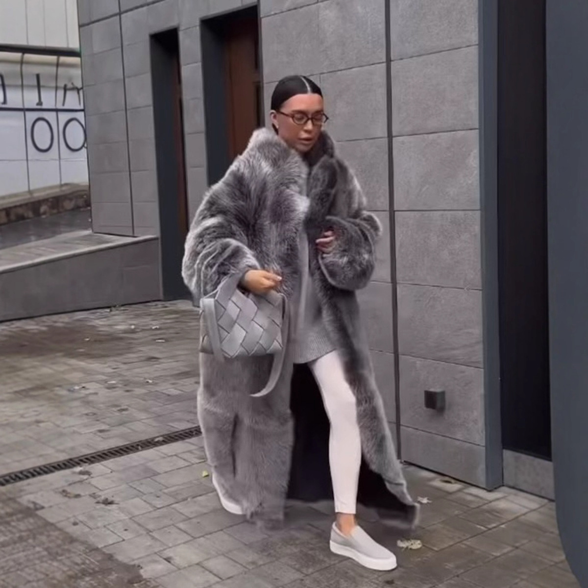 Women's Black And White Two-color Artificial Wool Coat