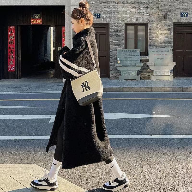 Women's Black Patchwork Lambswool Long Velvet Coat