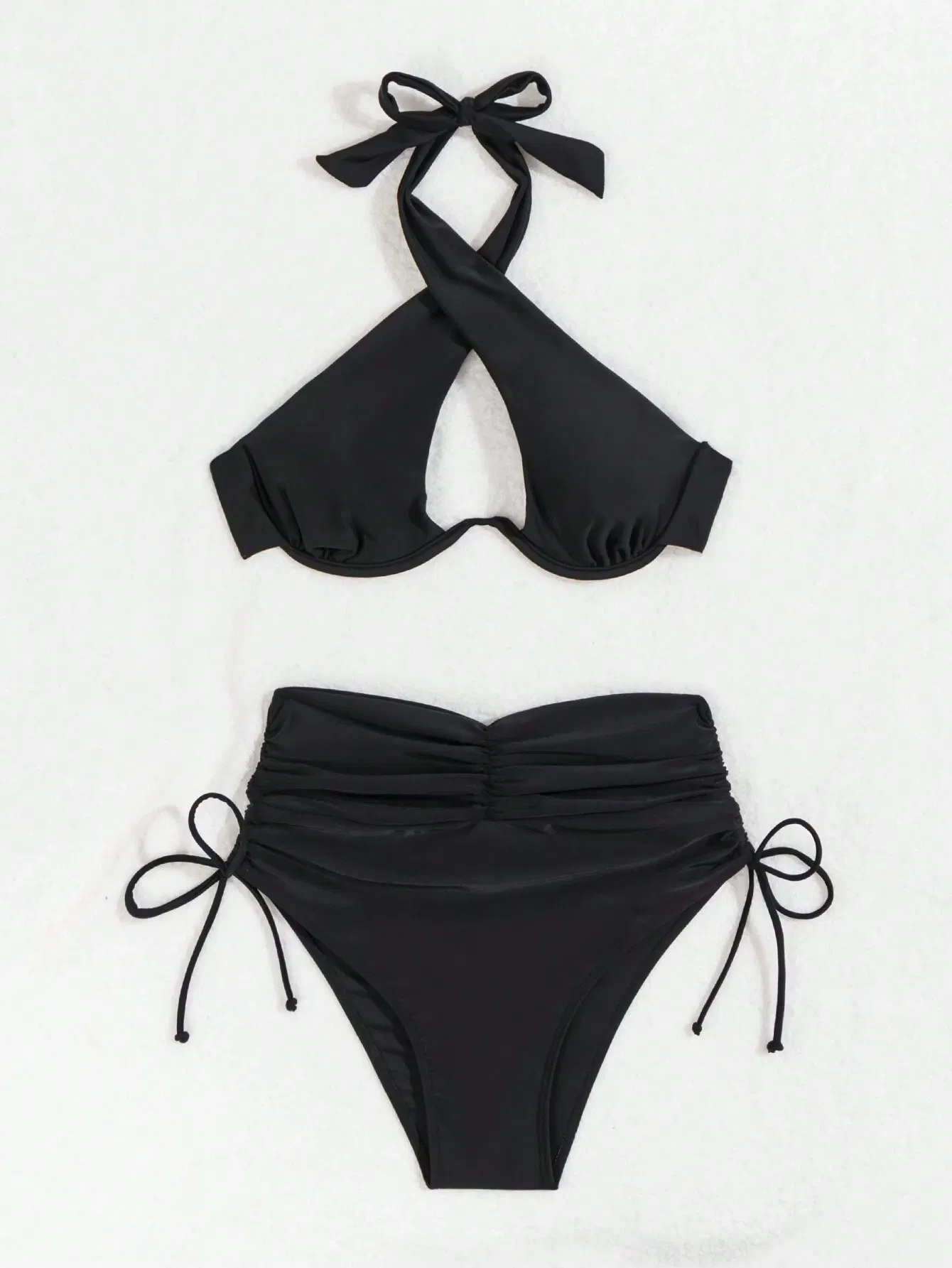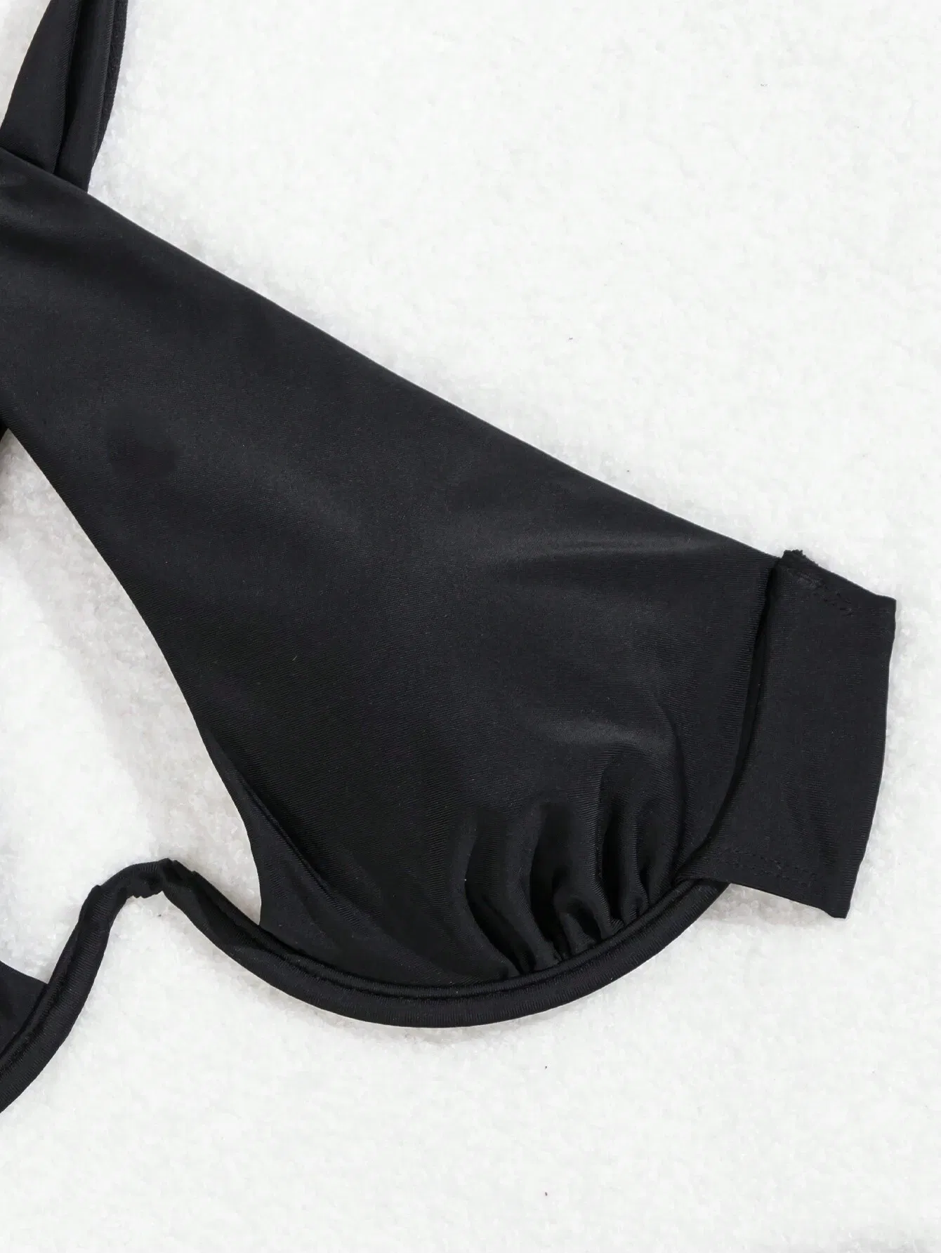Women's Black Sexy Two-piece Quick-dry Fabric Bikini Swimwear