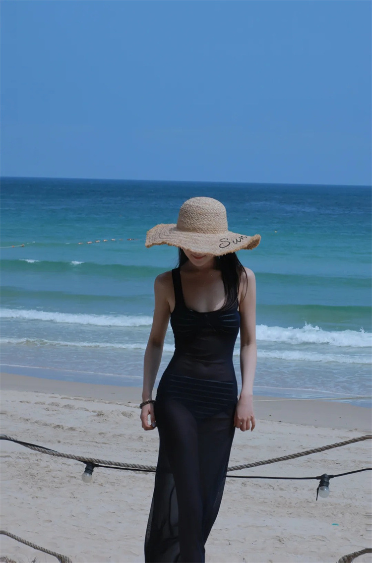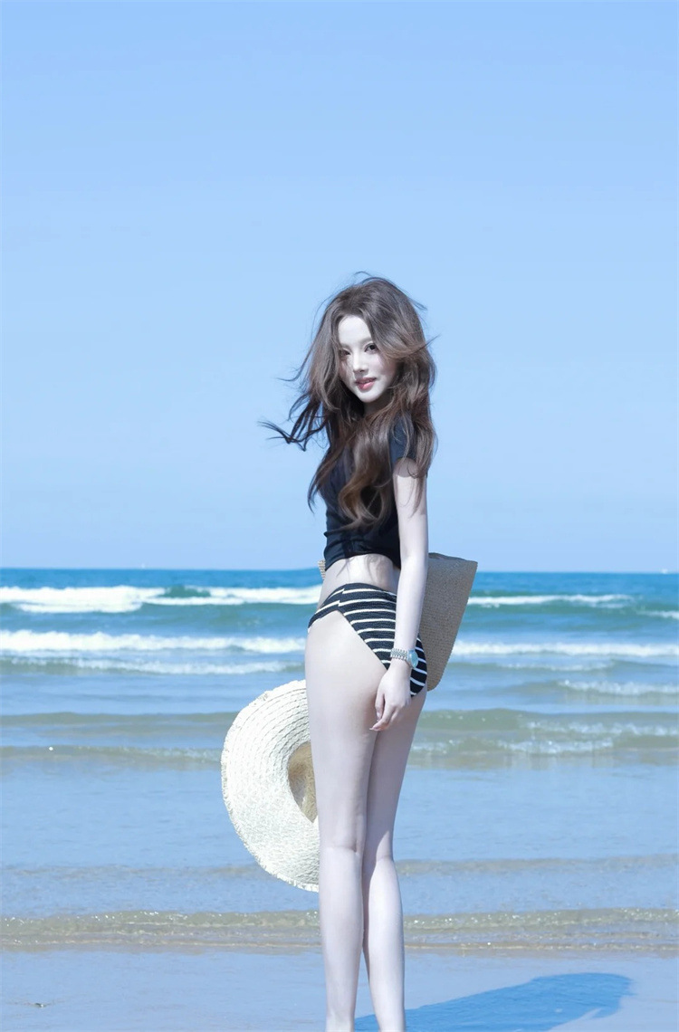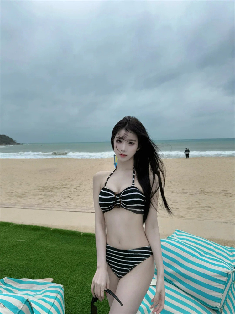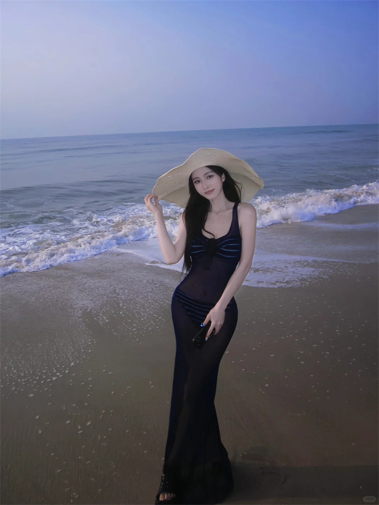 Colors: Striped two-piece set, striped three-piece set, navy blue long dress