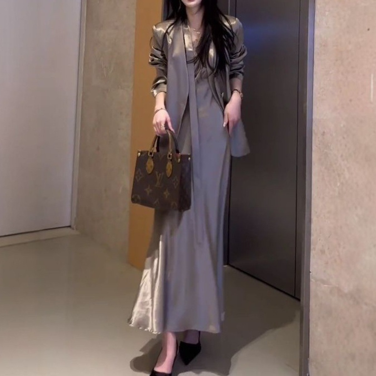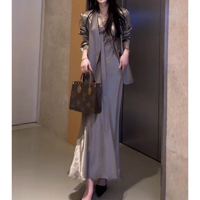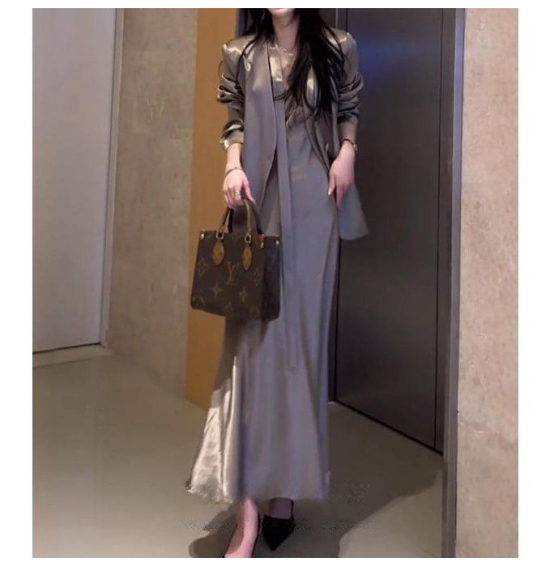 Colors: coffee-colored jacket, black jacket, coffee-colored dress, black dress, coffee-colored jacket + coffee-colored dress, black jacket + black dress