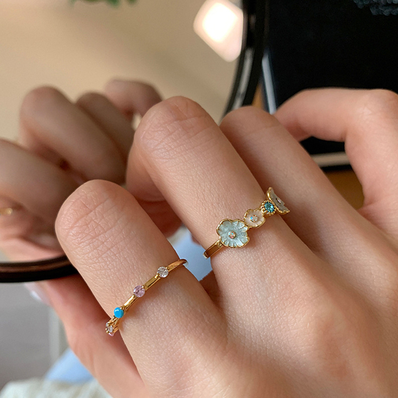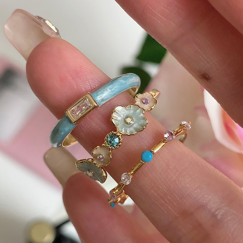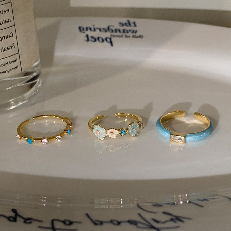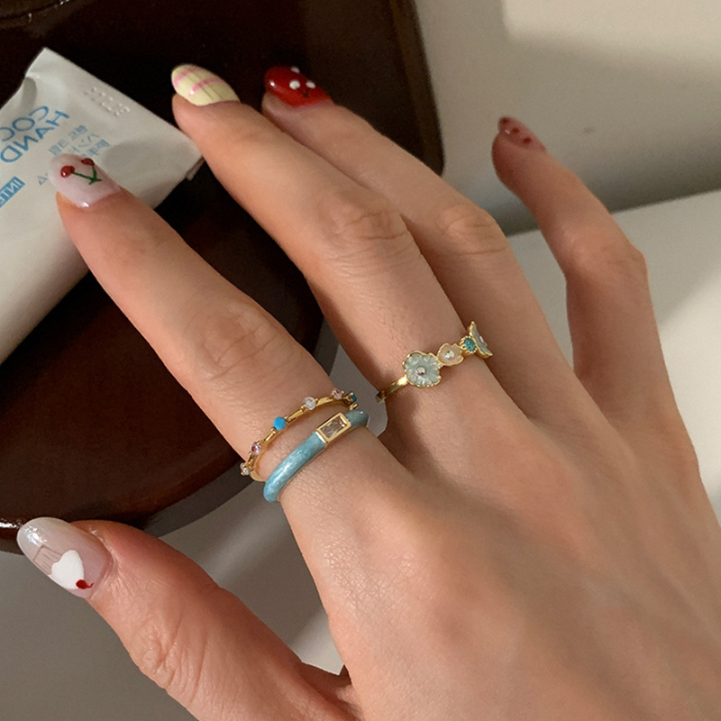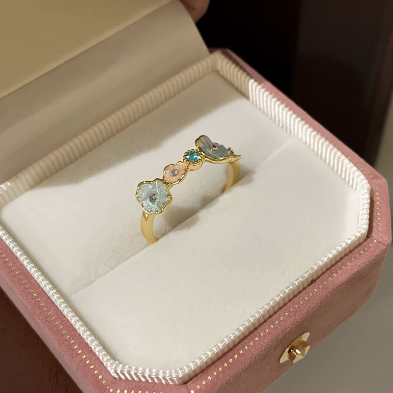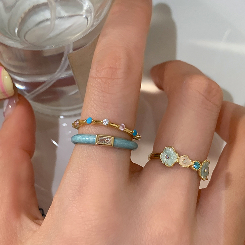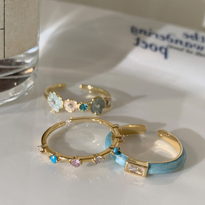 Color: flower ring with real gold plating, colored diamond ring with real gold plating, blue oil-drip ring with real gold plating