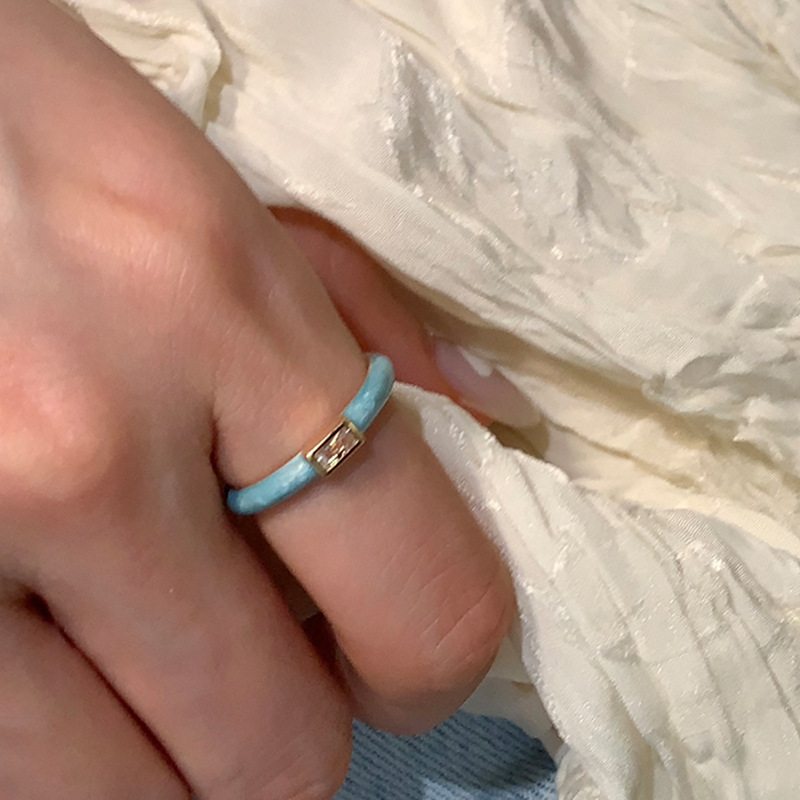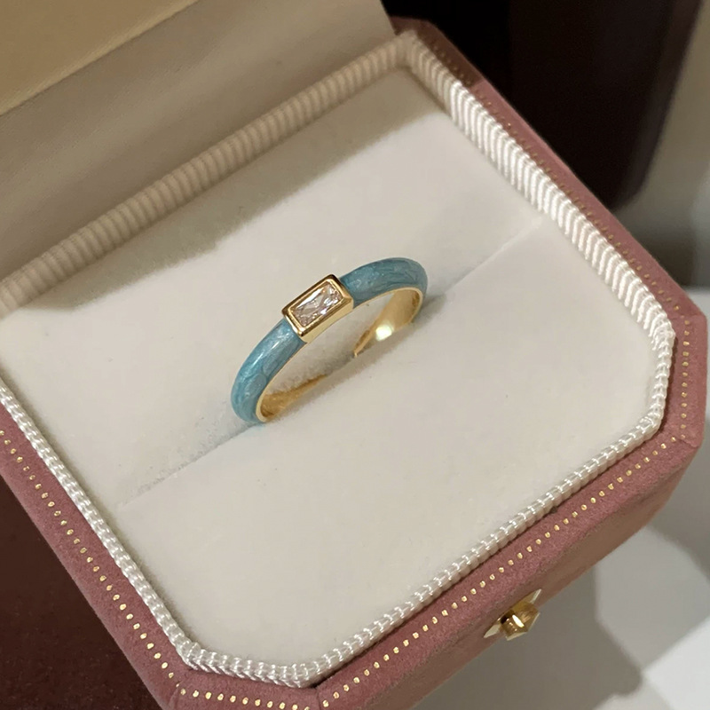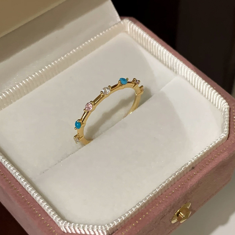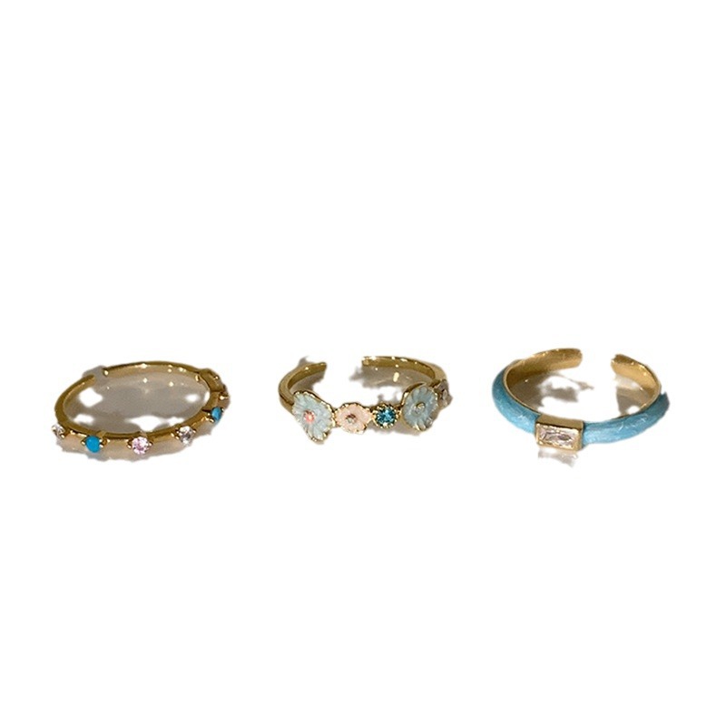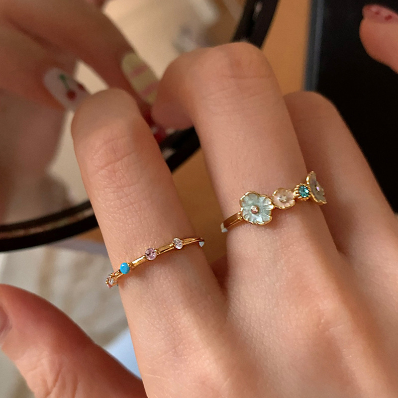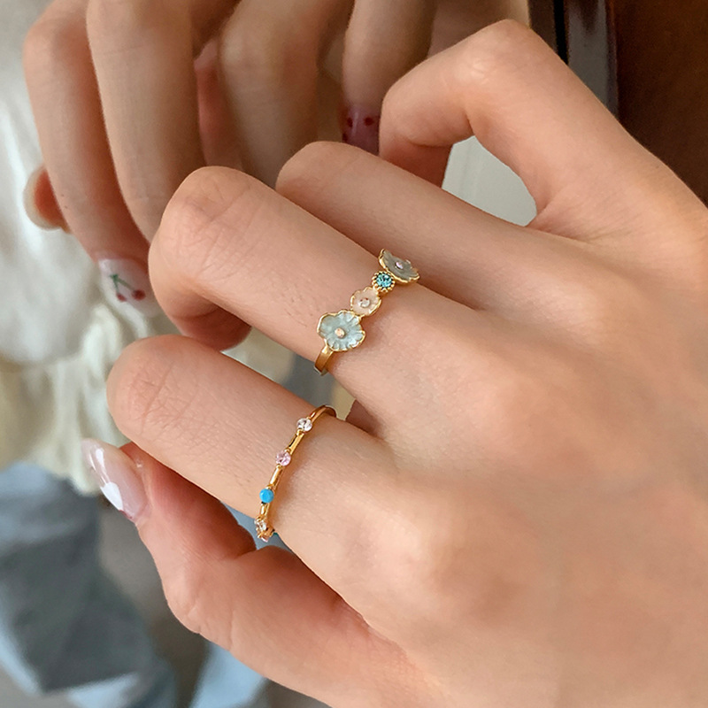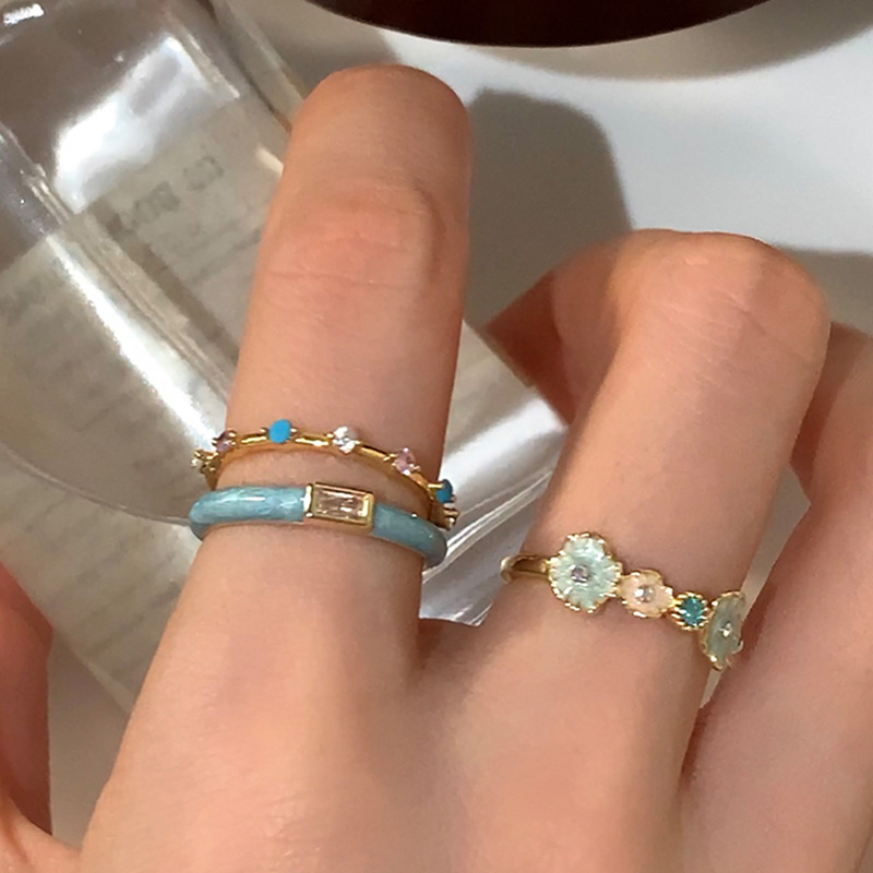 Color: flower ring with real gold plating, colored diamond ring with real gold plating, blue oil-drip ring with real gold plating