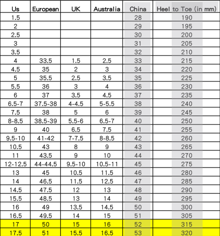 Size chart