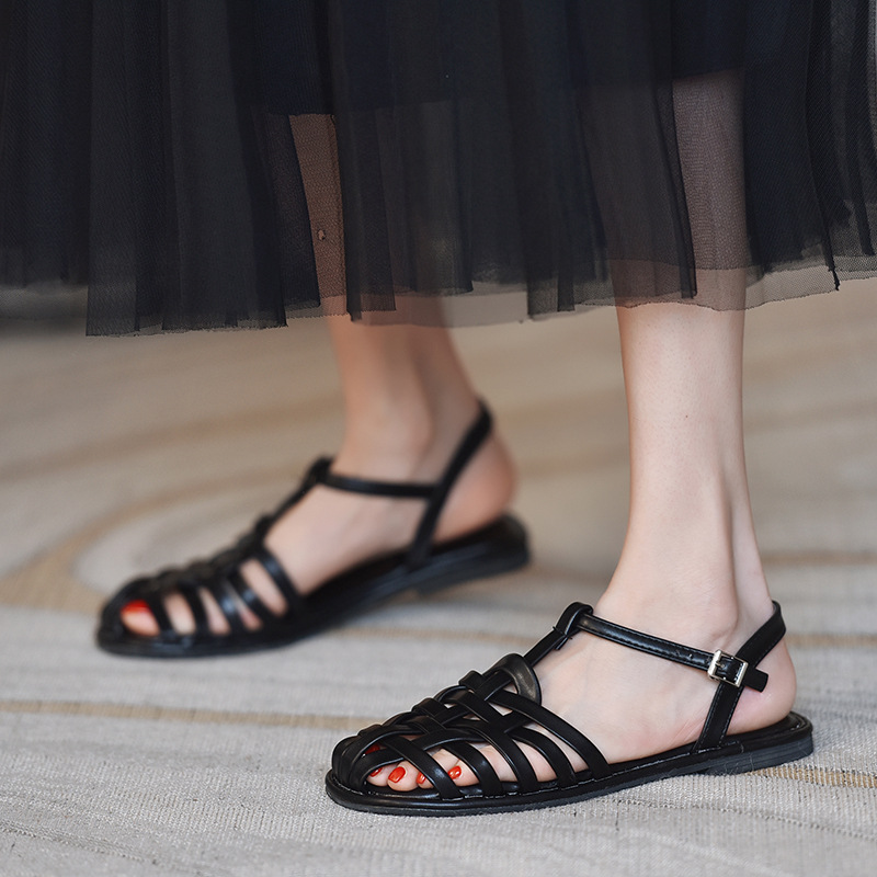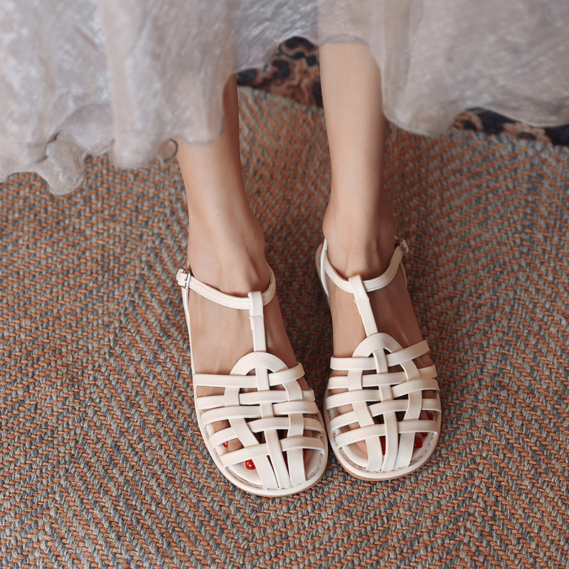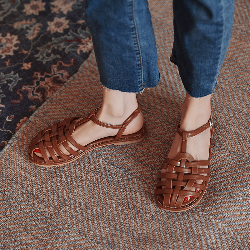 Women's Braided Buckle Cutout Flat Beach Shoes