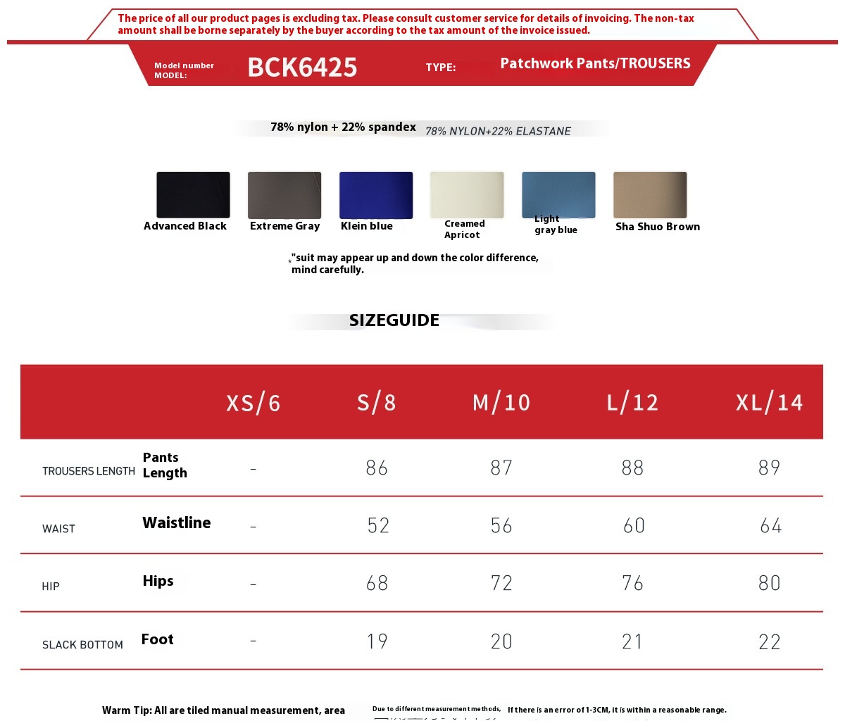Color: Premium Black, extreme Gray, Klein blue, cream apricot, light gray blue, Sha Shuo Brown