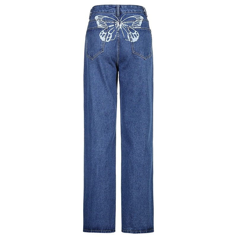 Women's Butterfly Printing High-waisted Jeans