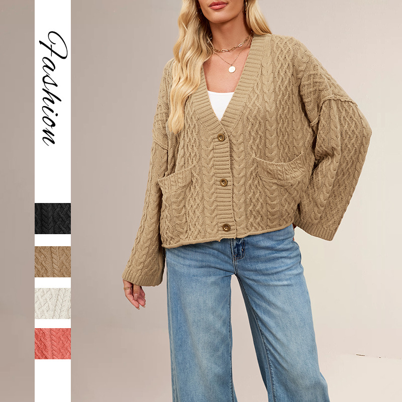 Women's Cable Loose-fitting Solid Color Knitted Cardigan