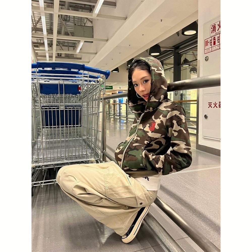 Women's Camouflage Hoodie Short SpringAutumn Coat