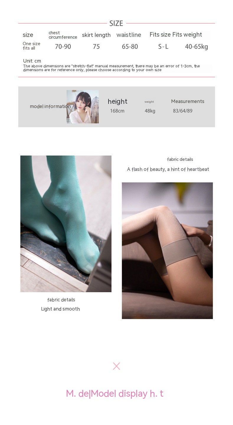 Function: sun protection, invisible, shaping, snagging ressistance, night club disco dancing