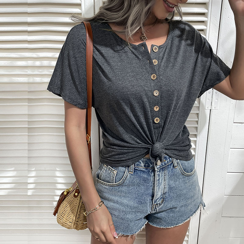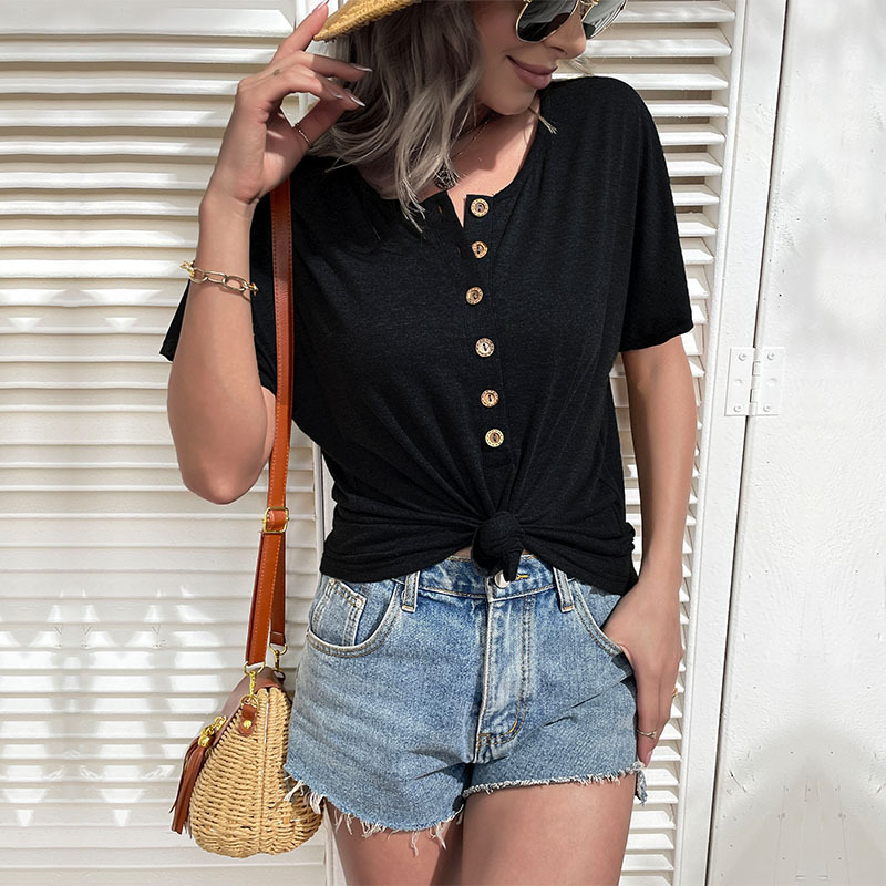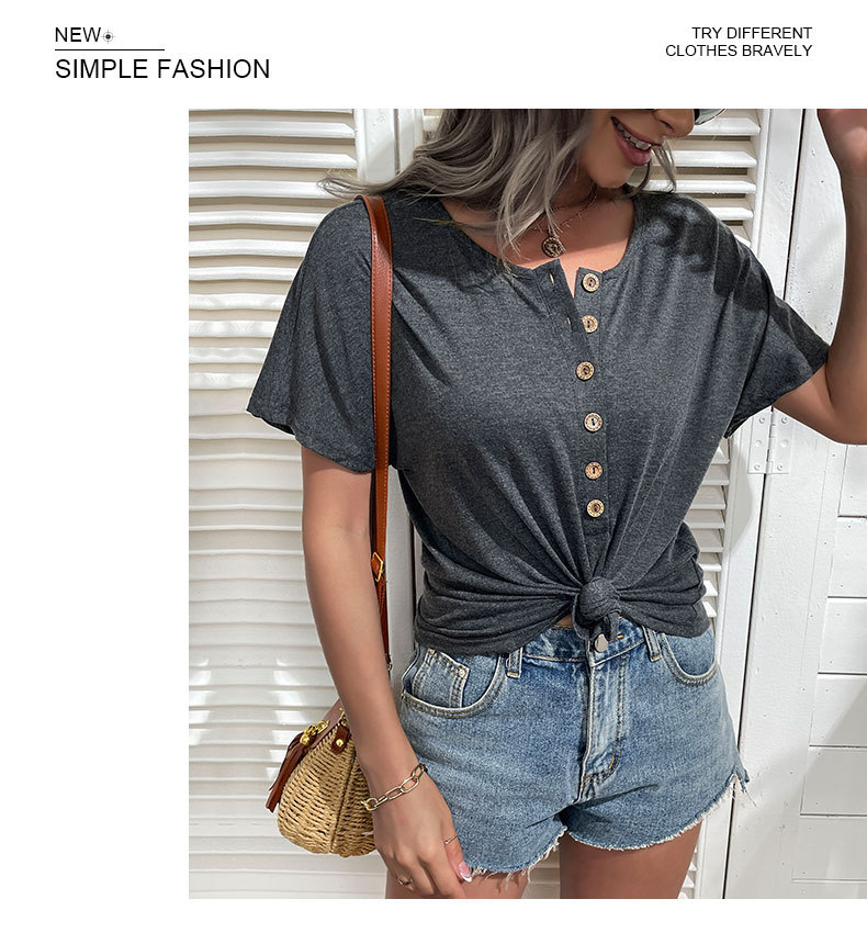 Women's Casual Button-Up Short-Sleeve T-Shirt