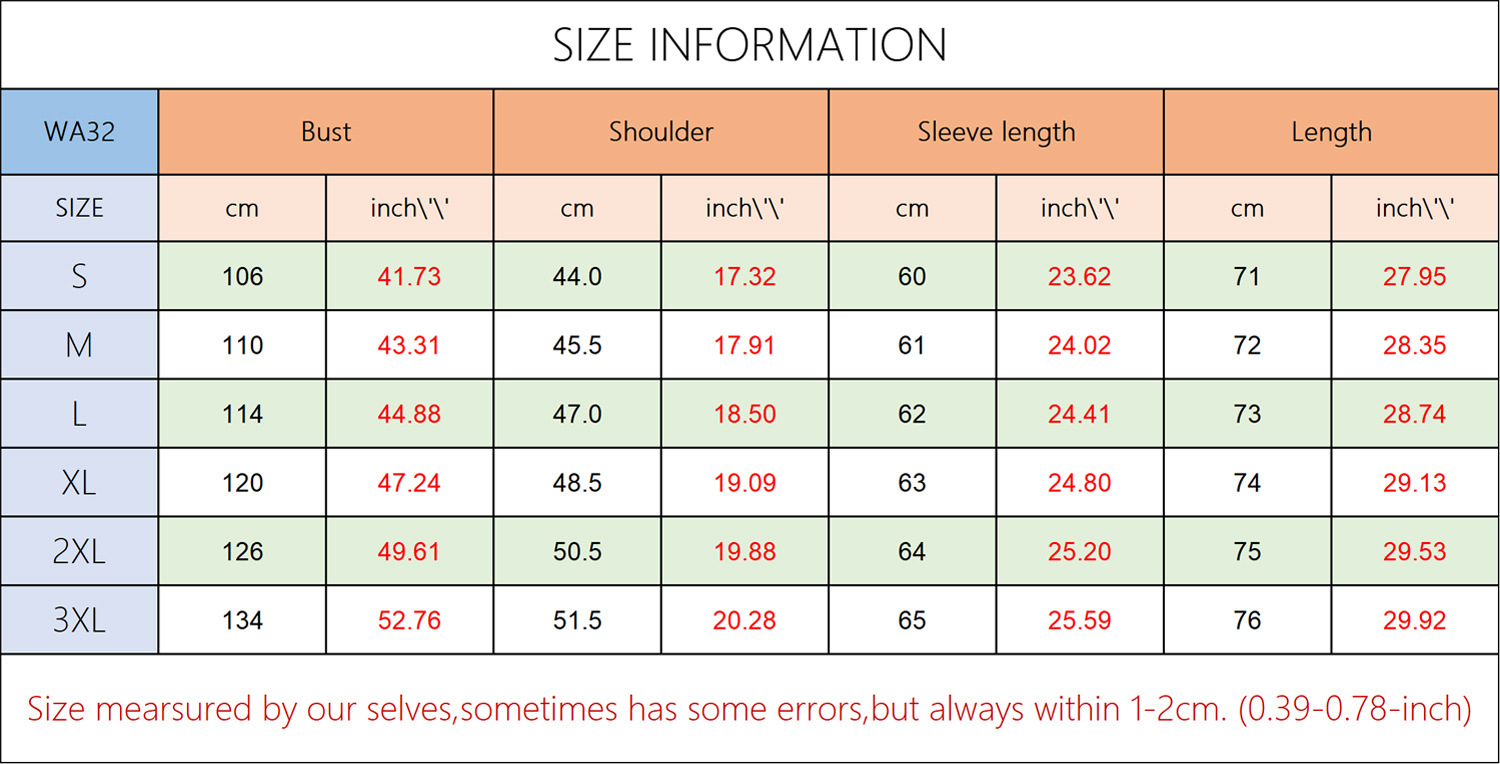 1. Asian sizes are 1 to 2 sizes smaller than European and American people. Choose the larger size if your size between two sizes. Please allow 2-3cm differences due to manual measurement. 2. Please check the size chart carefully before you buy the item, if you don't know how to choose size, please contact our customer service. 3.As you know, the different computers display colors differently, the color of the actual item may vary slightly from the following images.