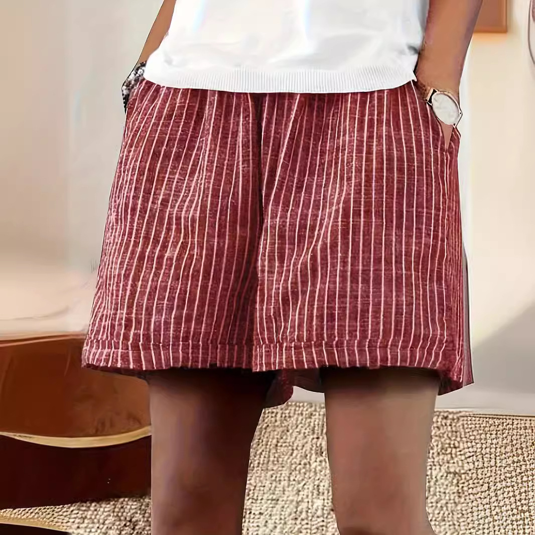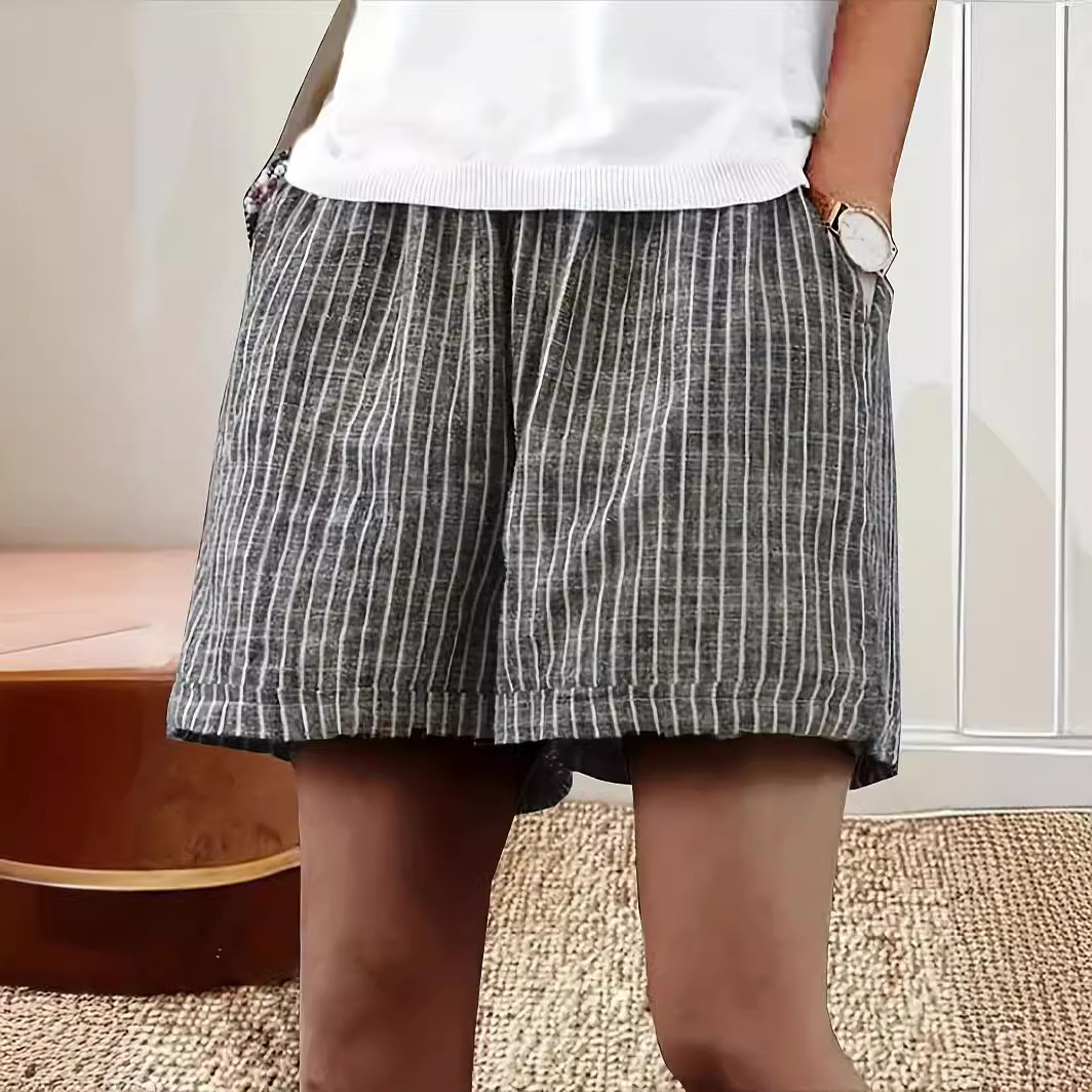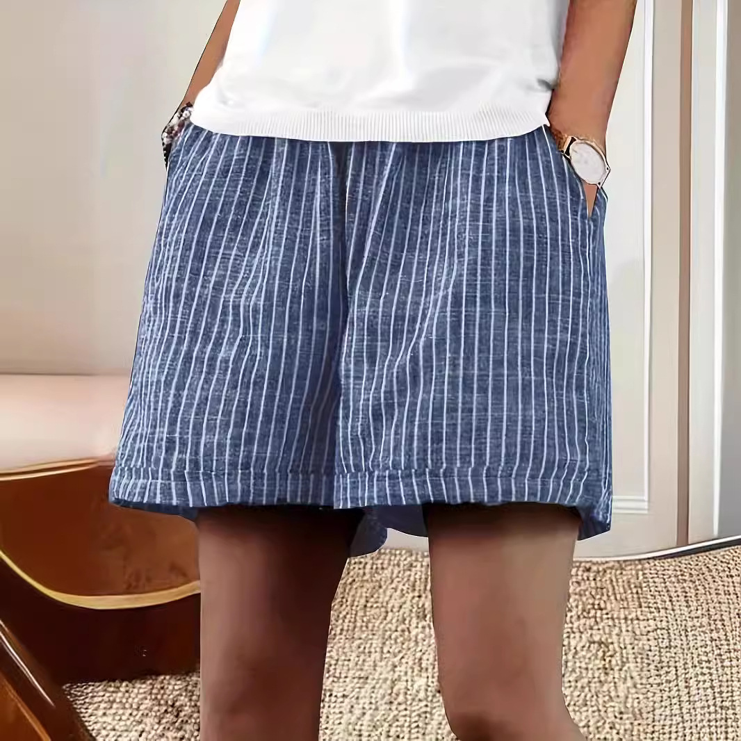 Women's Casual Cotton And Linen Stripes Shorts