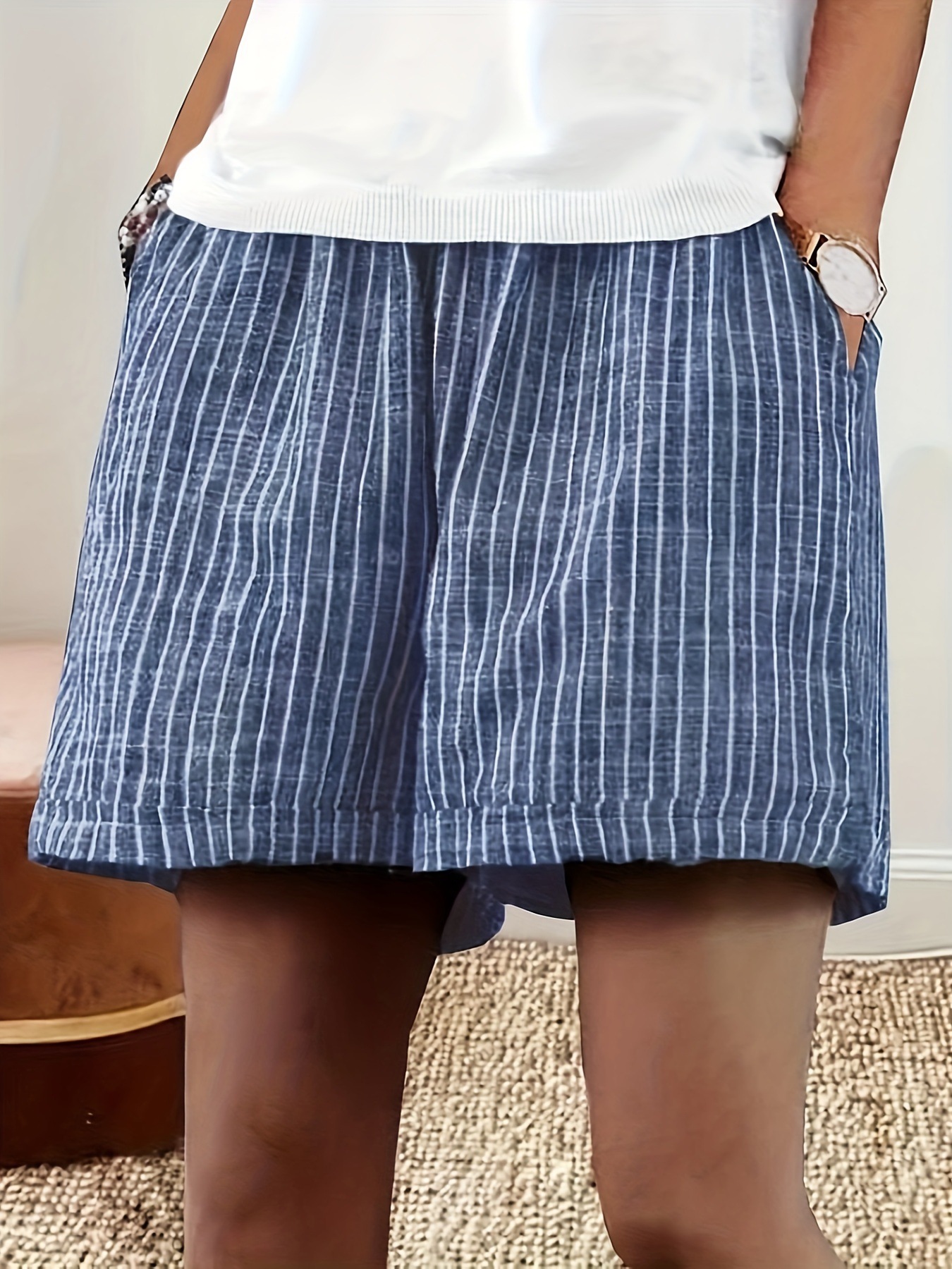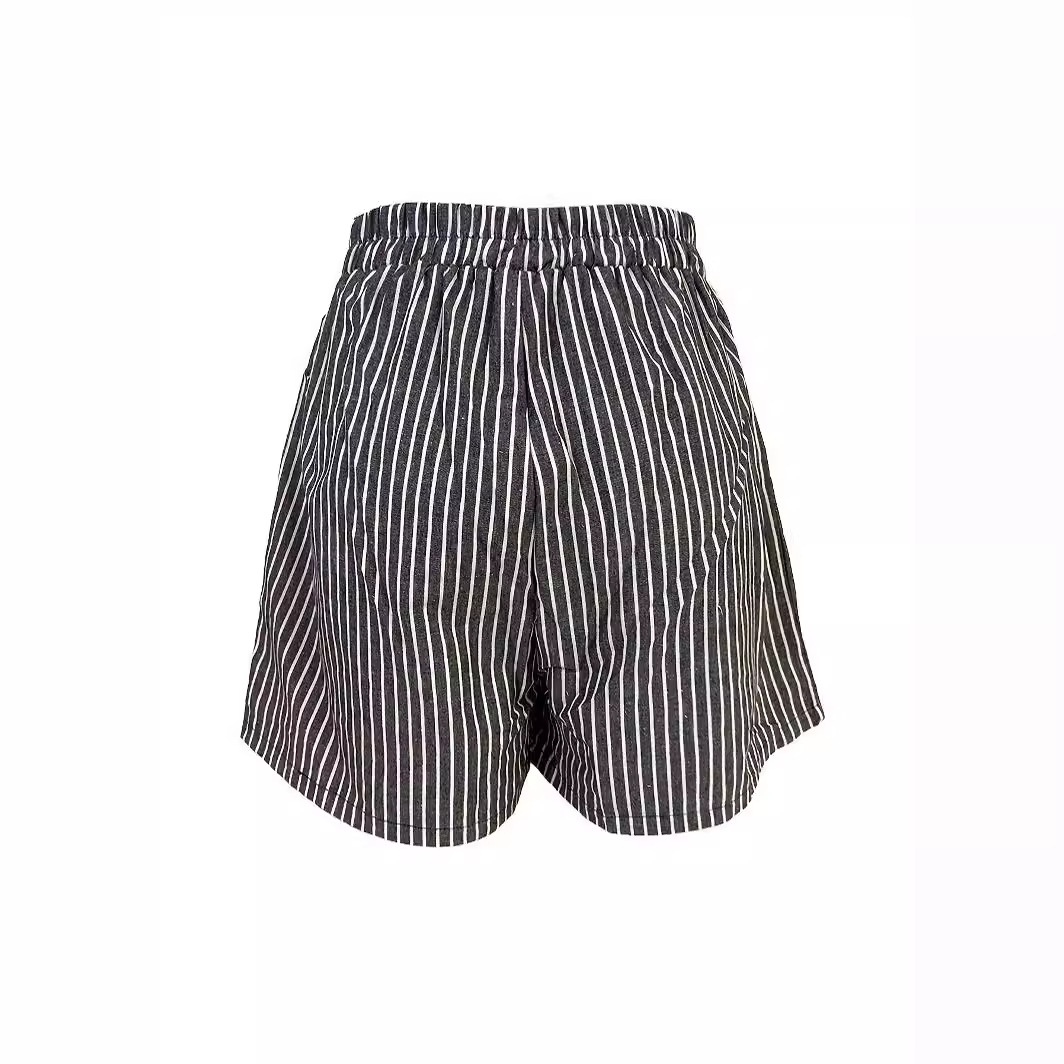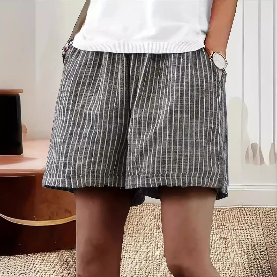 Women's Casual Cotton And Linen Stripes Shorts