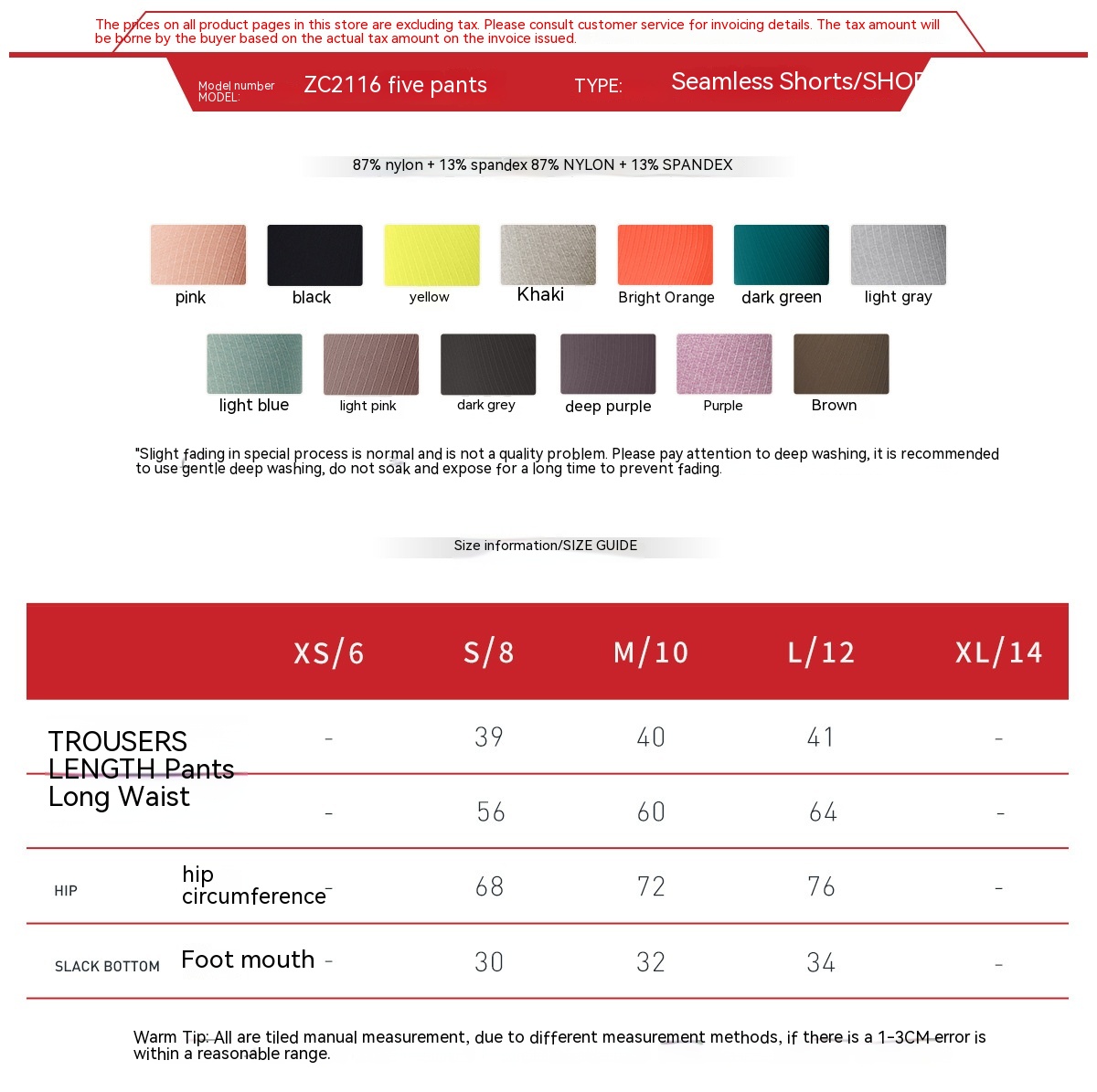 Fabric: 87% nylon+13% spandex