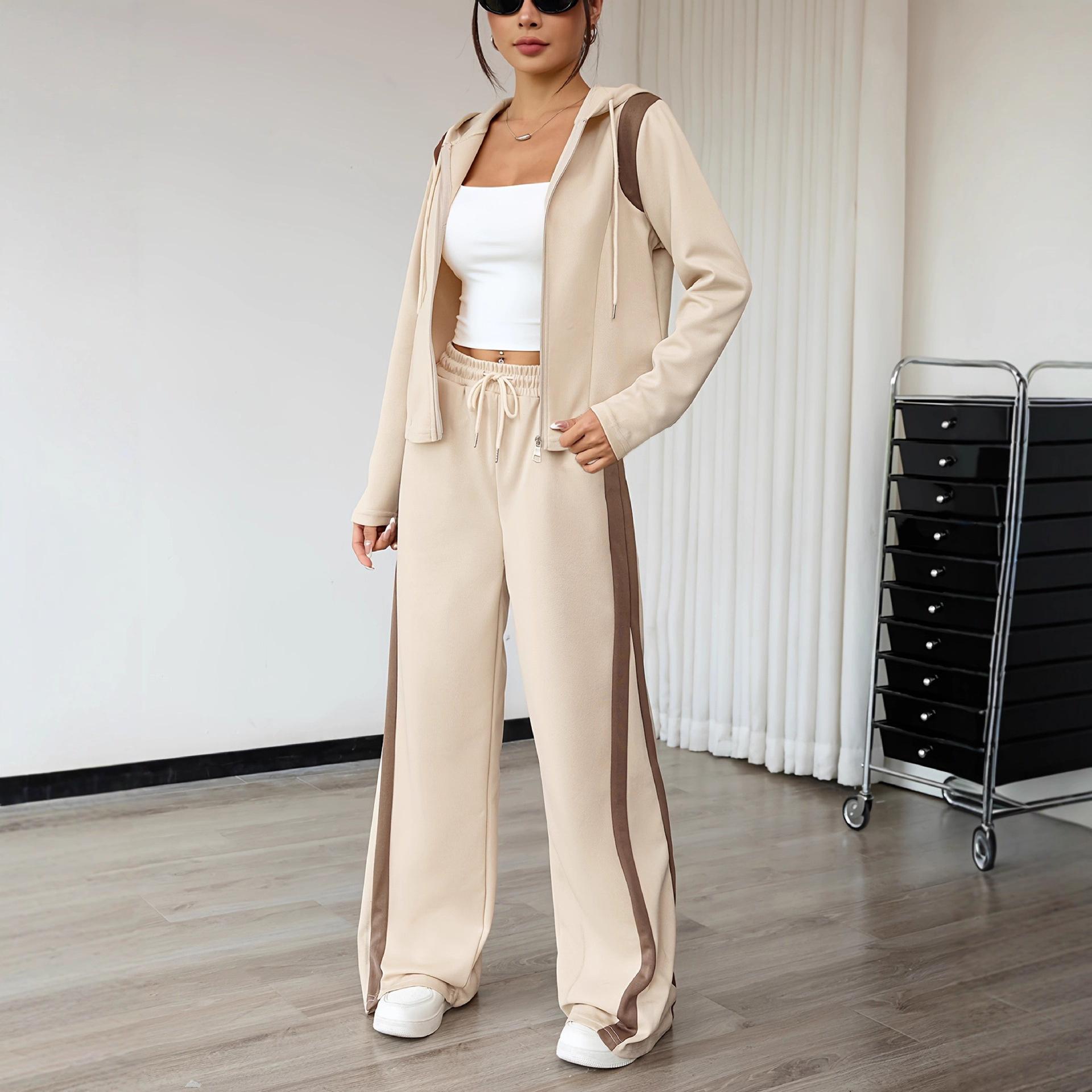 Womens Casual Hooded Cardigan Top And Pants Fashion Set