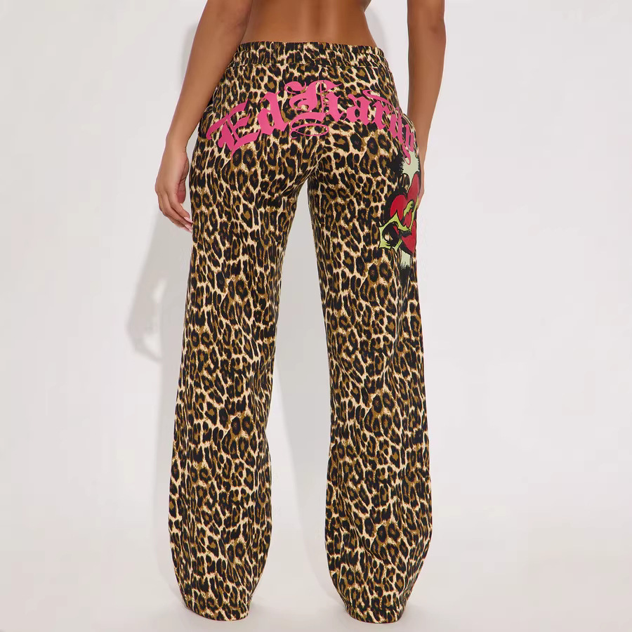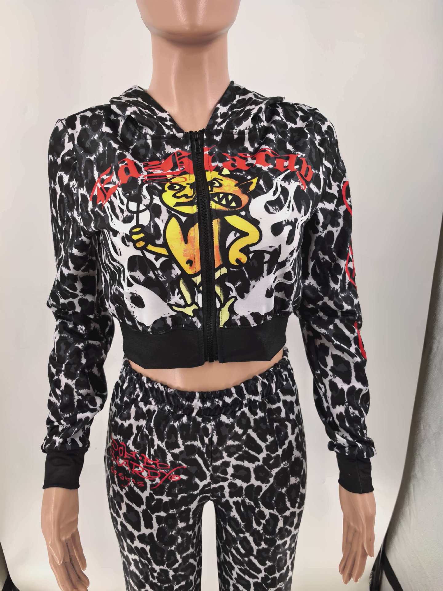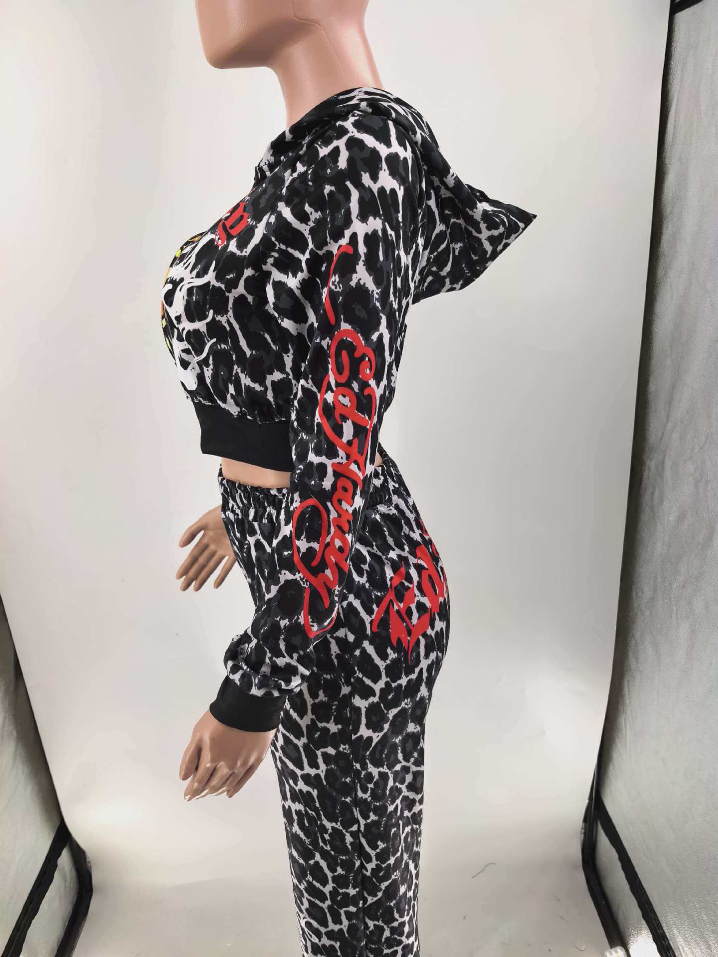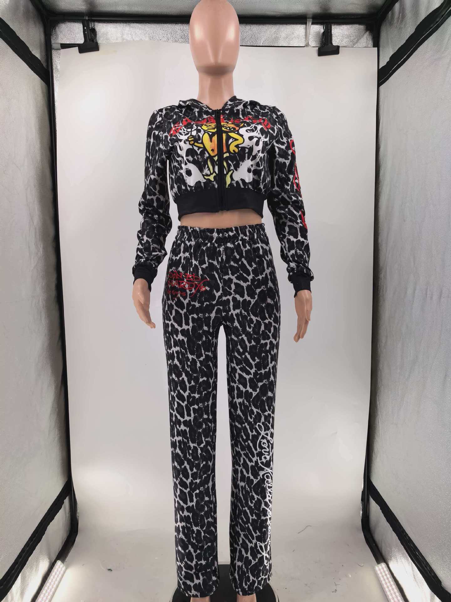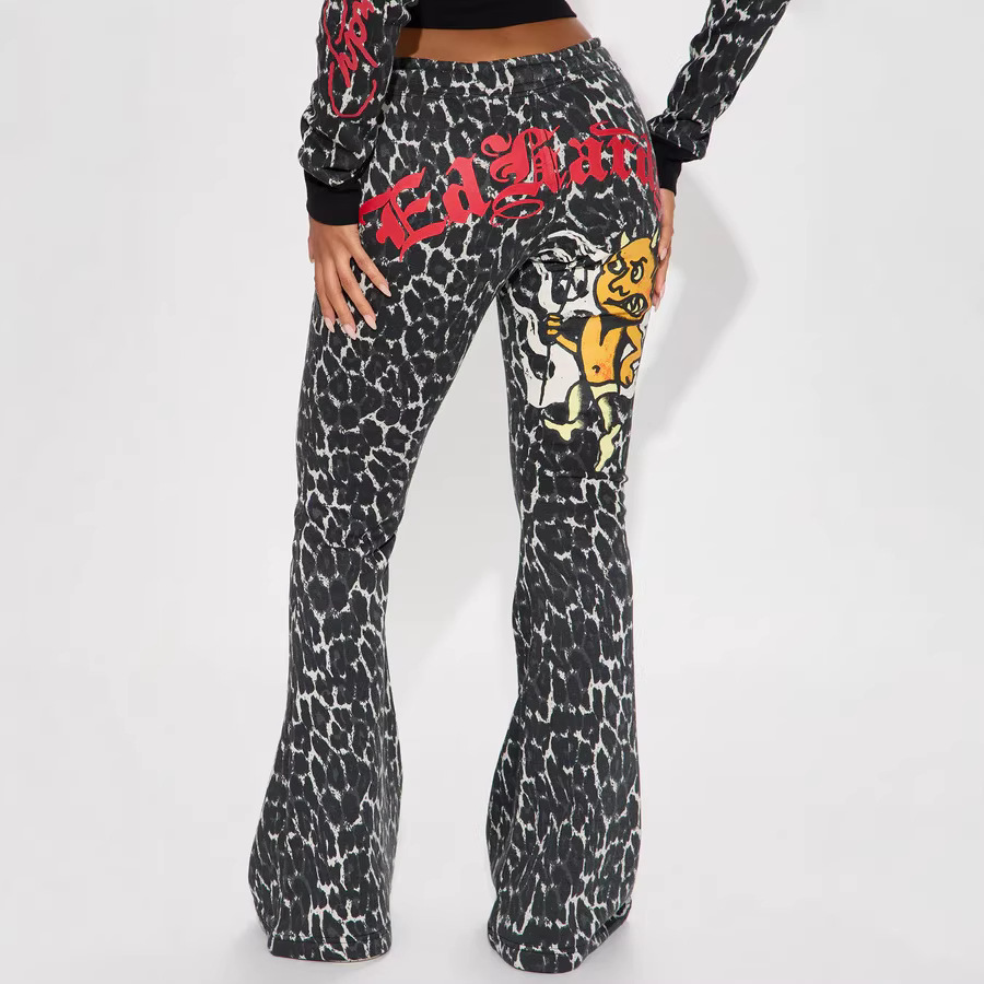 Womens Casual Hooded Set Flared Pants With Leopard Print And A Matching Top