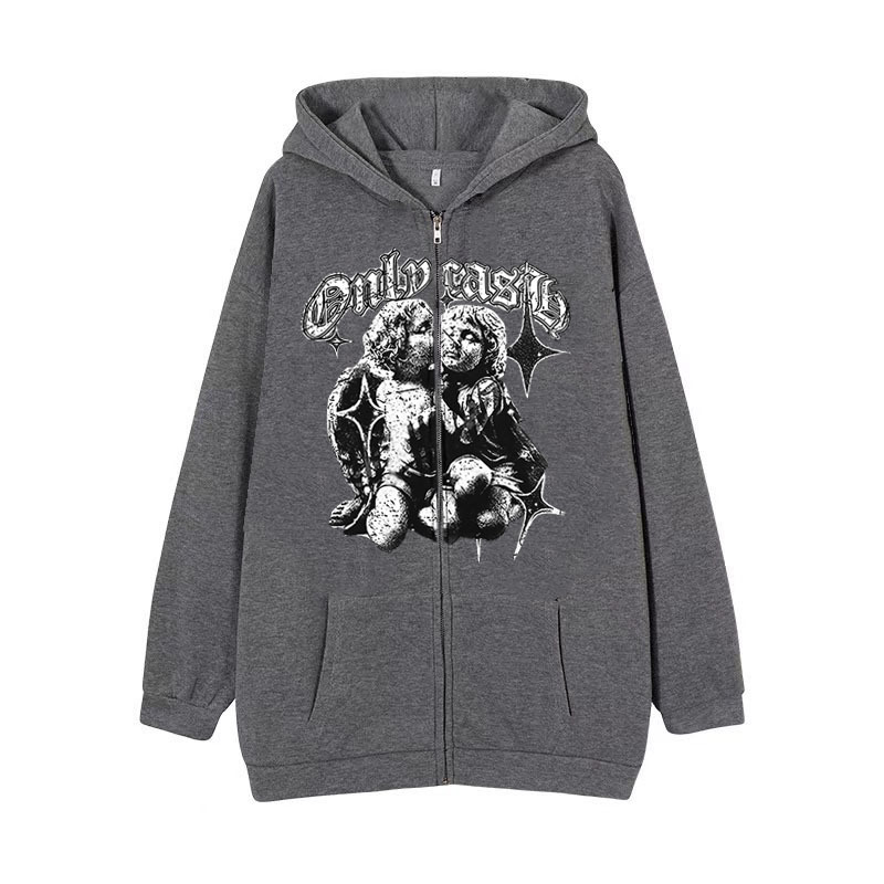 Women's Casual Hoodie Wings Angel Zipper Sweater