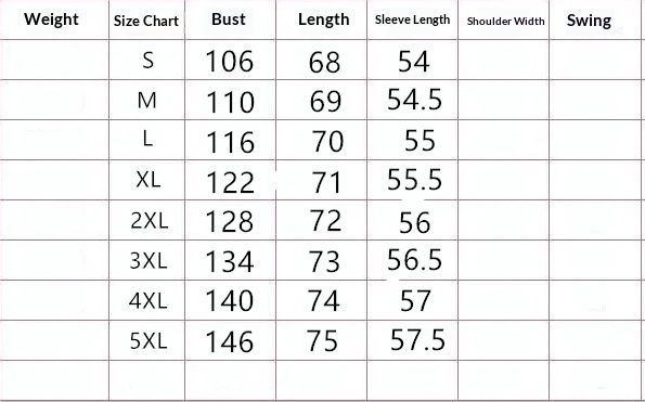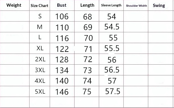 Sizes: S, M, L, XL, 2XL, 3XL, 4XL, 5XL