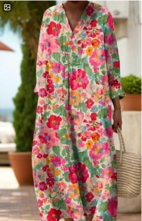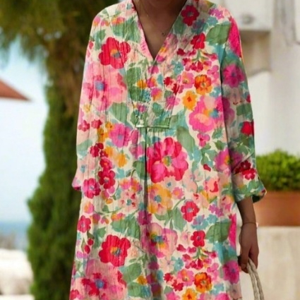 Womens Casual Long-Sleeve Shirt Dress With 3D Floral Print On The Sleeves