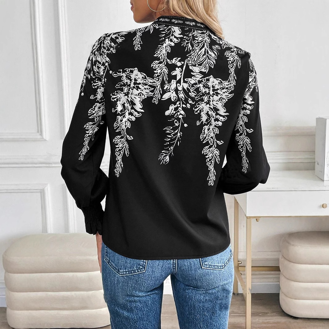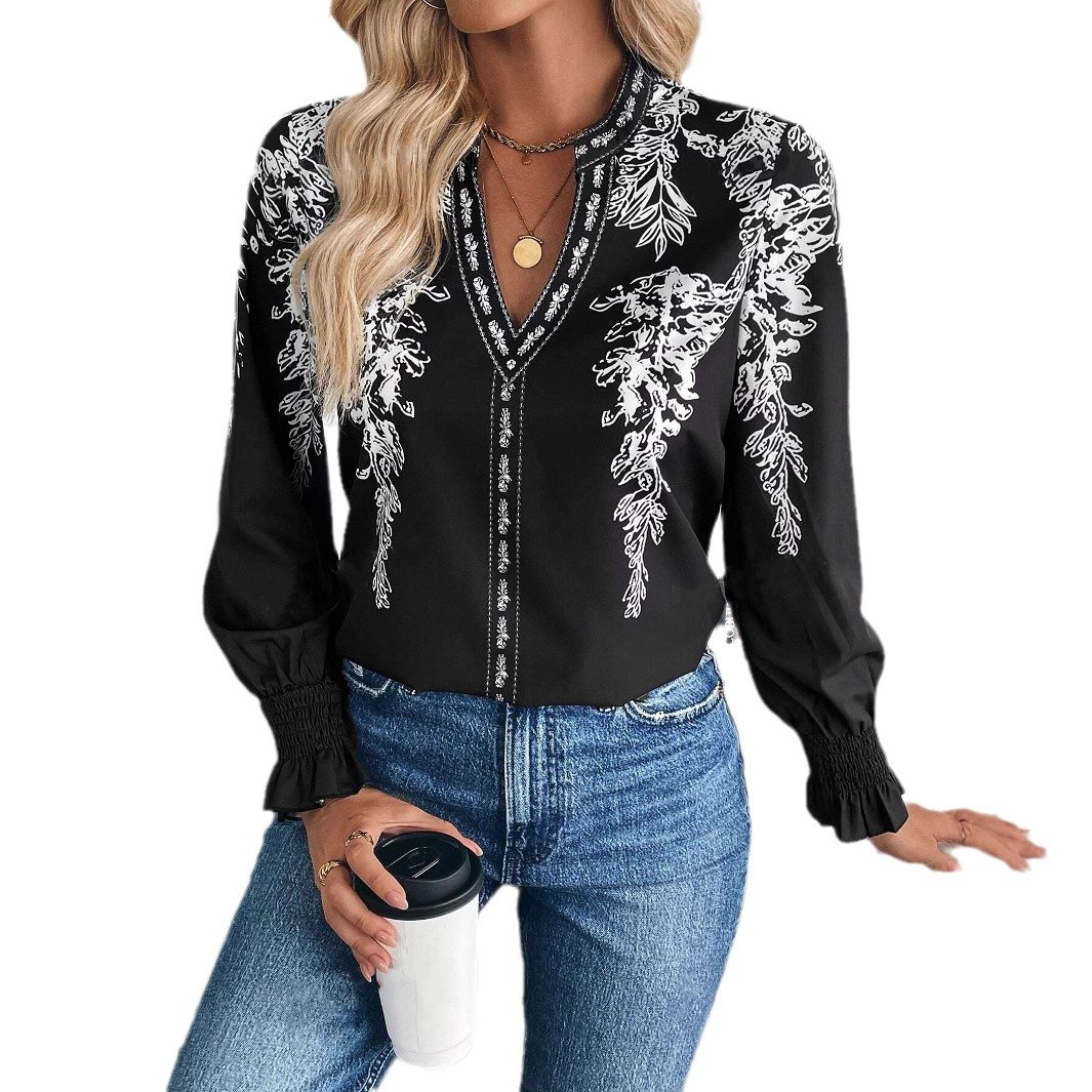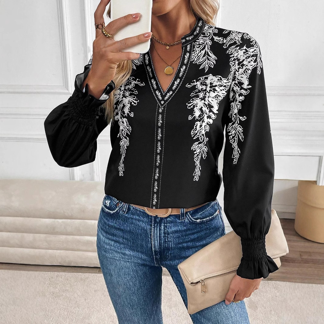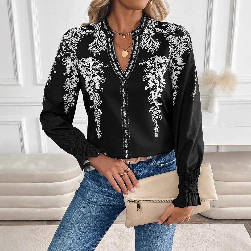 Womens Casual Long-sleeve V-neck Blouse