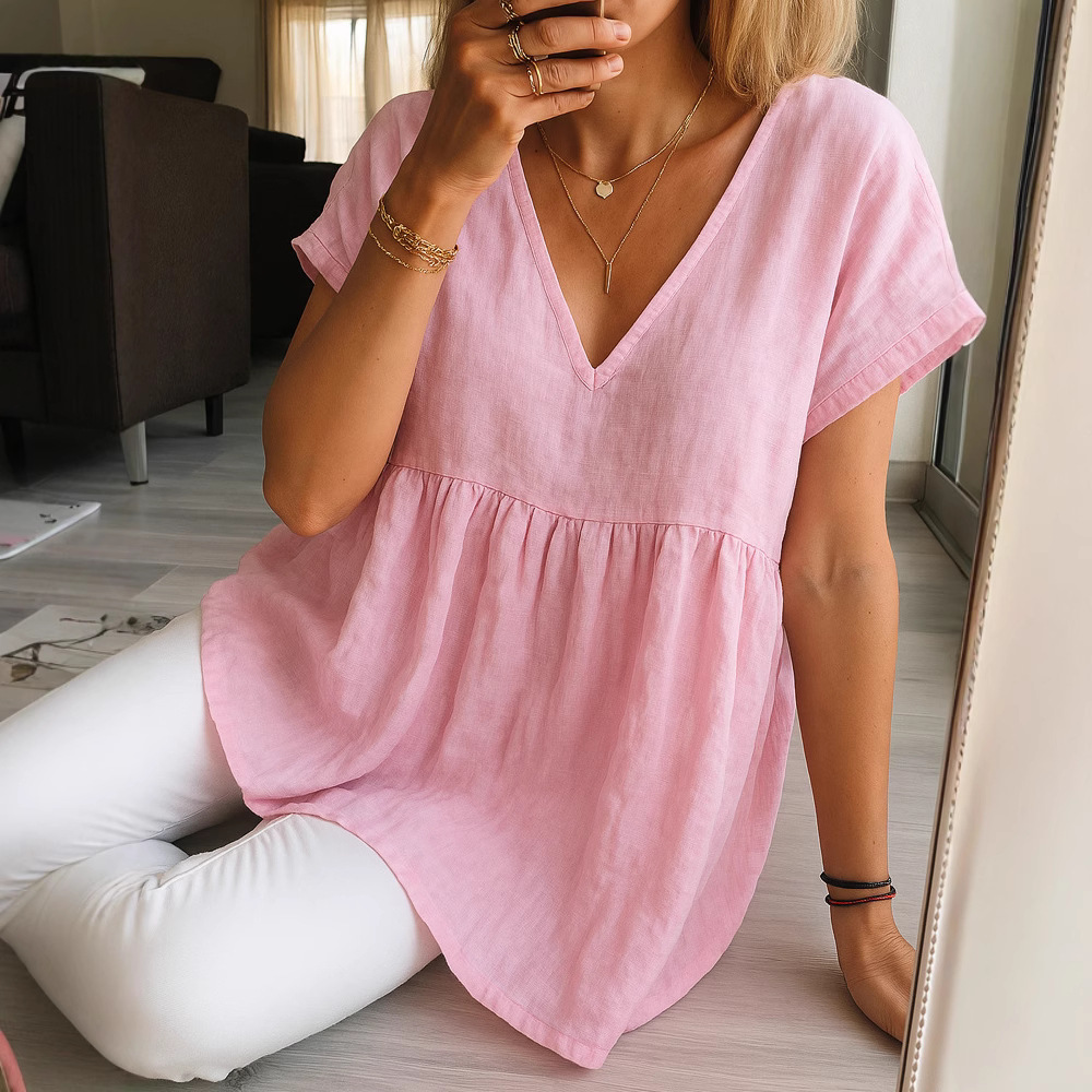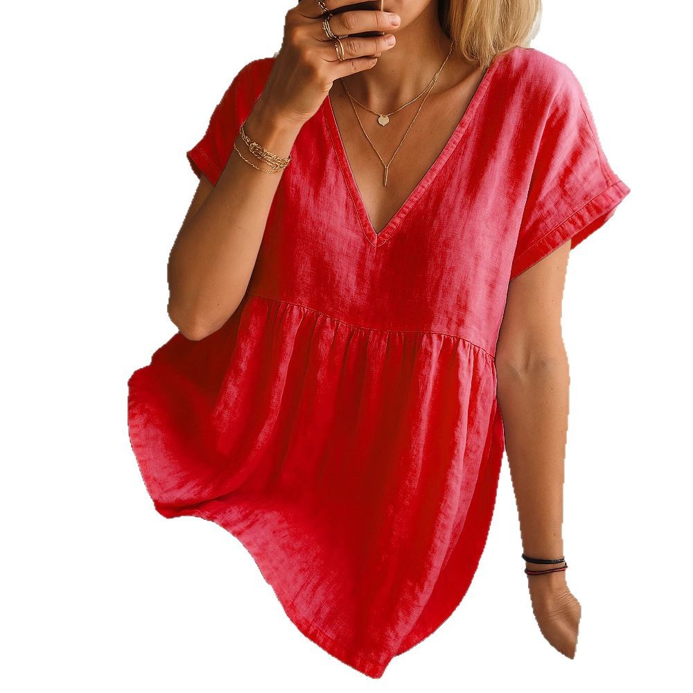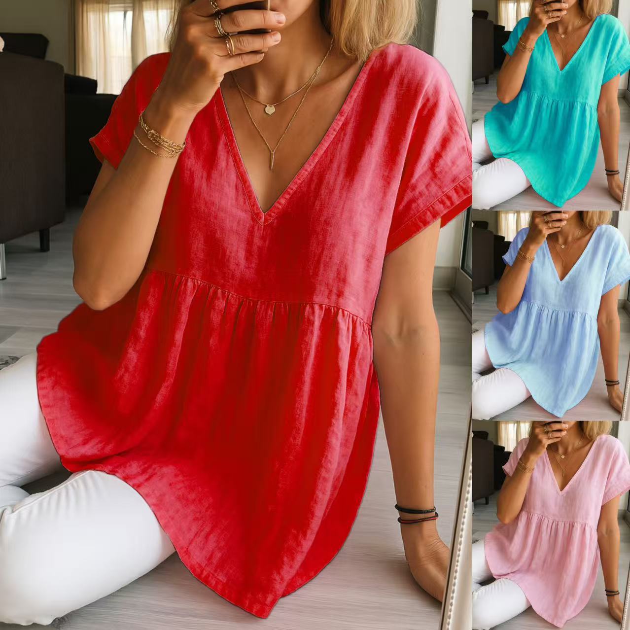 Women's Casual Loose-Fit Fashion Cotton-Linen Short-Sleeve Top